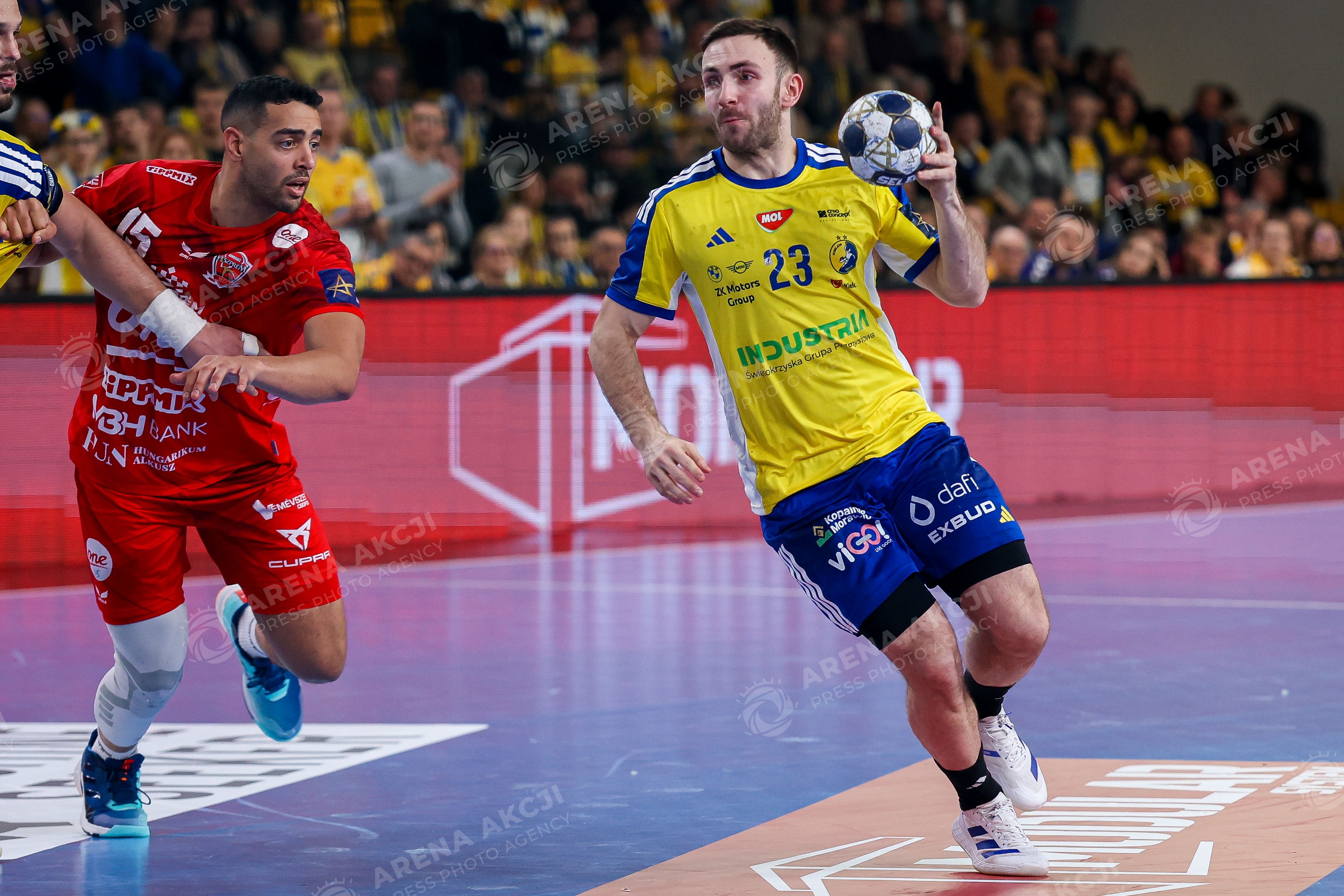 Kielce 19.02.2026. Pilka reczna EHF Liga Mistrzow sezon 2025/2026 kolejka 11 mecz: Industria Kielce - One Veszprem --- Handball EHF Champions League season 2025/2026 round 11 match between Industria Kielce and One Veszprem at Hala Legionow in Kielce, Poland Arkadiusz Moryto Fot. Igor Jakubowski / Arena Akcji
