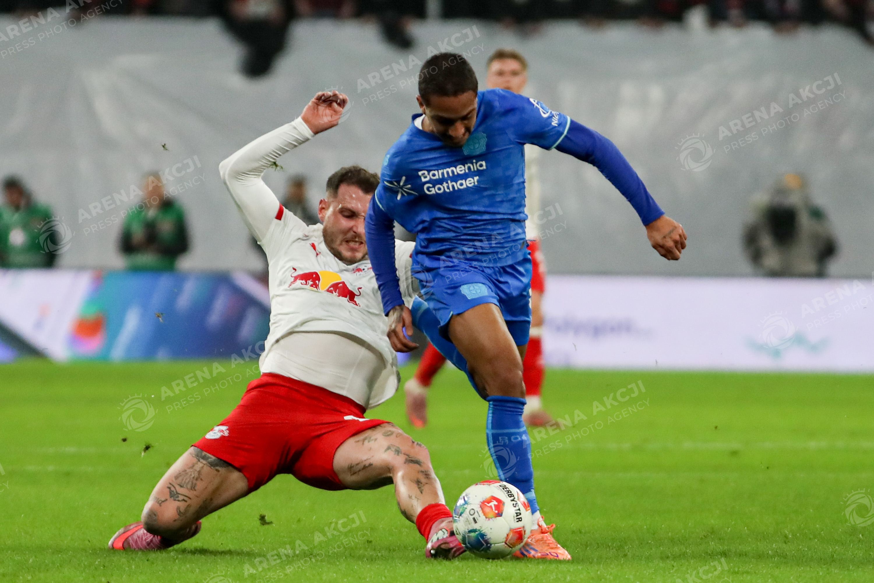 Lipsk 20.12.2025. Pilka nozna Bundesliga sezon 2025/2026 kolejka 15 mecz: RB Lipsk - Bayer Leverkusen --- Football Bundesliga season 2025/2026 round 15 match: RB Leipzig - Bayer Leverkusen nz Arthur David Raum Fot. Kacper Staniec / Arena Akcji