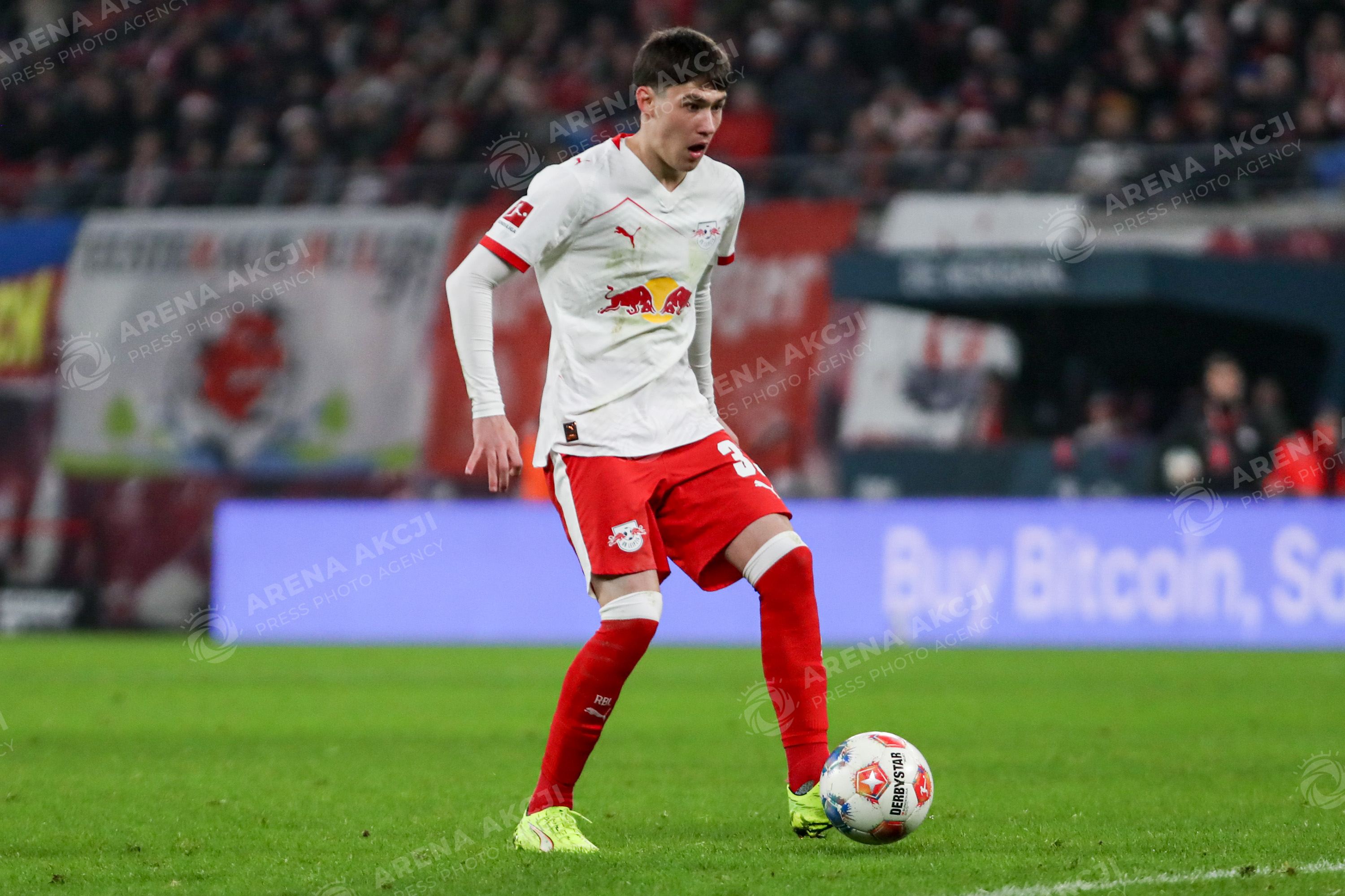 Lipsk 20.12.2025. Pilka nozna Bundesliga sezon 2025/2026 kolejka 15 mecz: RB Lipsk - Bayer Leverkusen --- Football Bundesliga season 2025/2026 round 15 match: RB Leipzig - Bayer Leverkusen nz Andrija Maksimovic Fot. Kacper Staniec / Arena Akcji