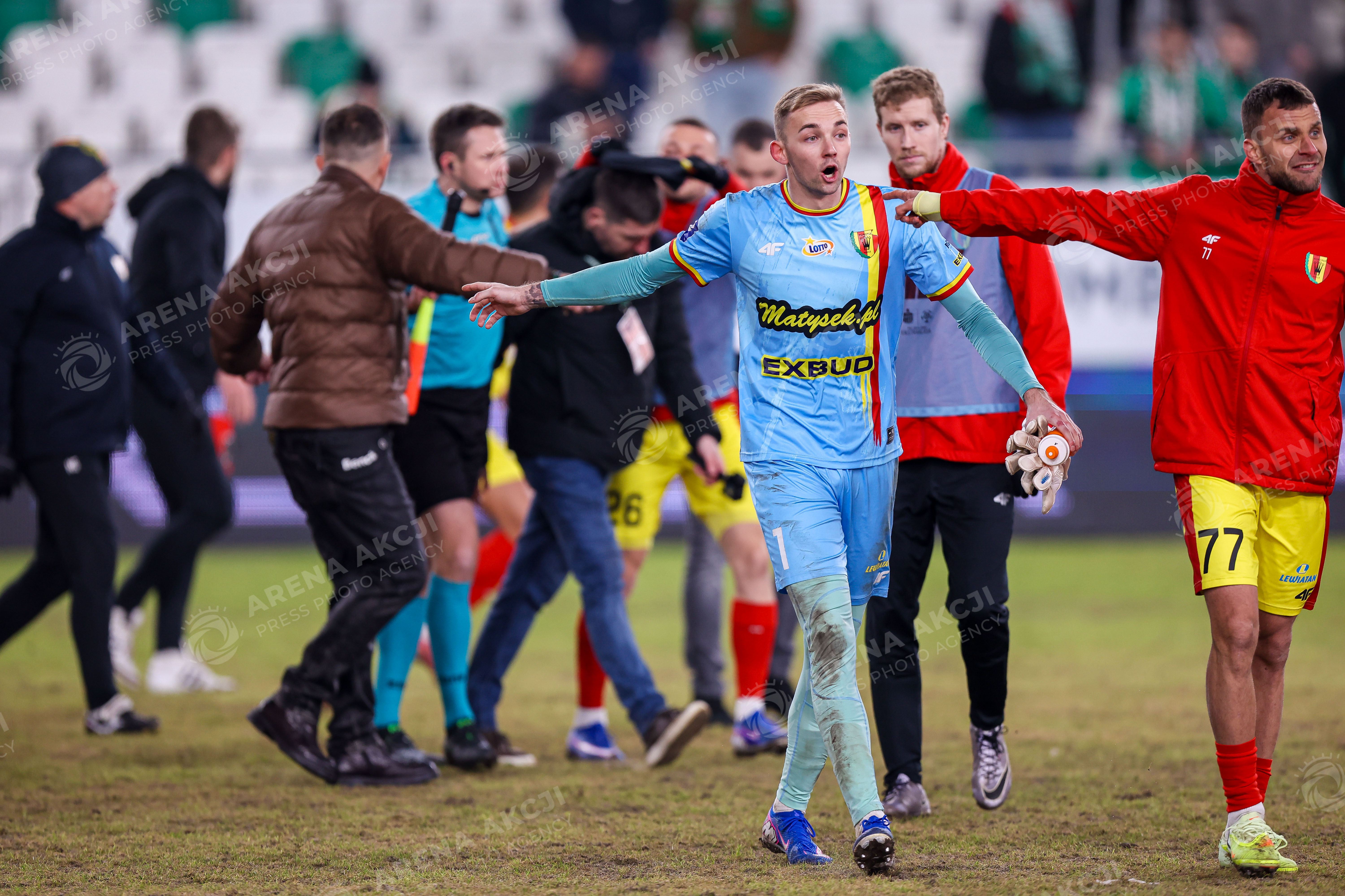 Radom 13.02.2026. Pilka nozna PKO BP Ekstraklasa sezon 2025/2026 kolejka 21 mecz: Radomiak Radom - Korona Kielce --- Football PKO BP Ekstraklasa season 2025/2026 round 21 match: Radomiak Radom - Korona Kielce nz Xavier DziekoAski bijatyka zadyma klotnia rozroba Fot. Igor Jakubowski / Arena Akcji