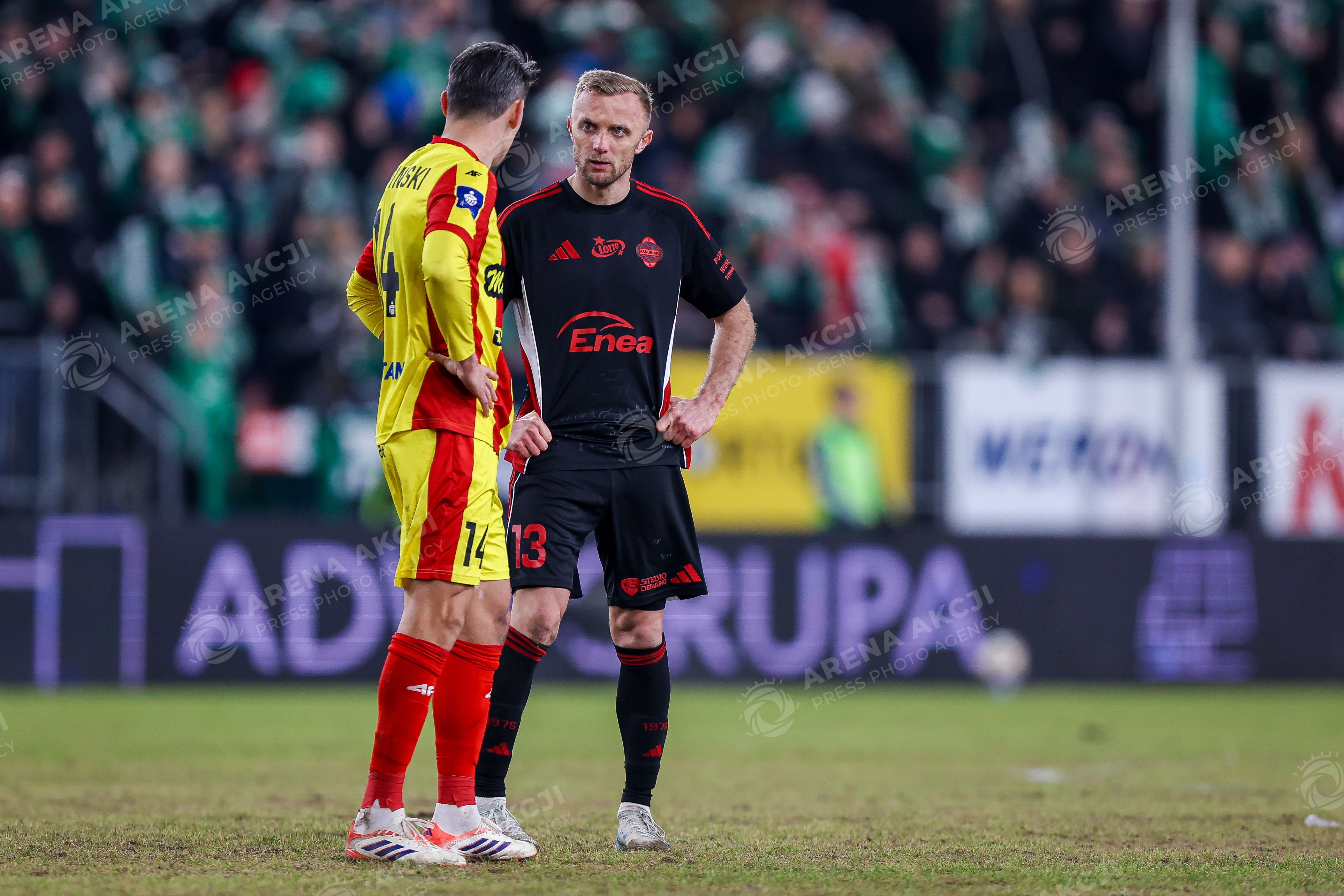 Radom 13.02.2026. Pilka nozna PKO BP Ekstraklasa sezon 2025/2026 kolejka 21 mecz: Radomiak Radom - Korona Kielce --- Football PKO BP Ekstraklasa season 2025/2026 round 21 match: Radomiak Radom - Korona Kielce nz Jan Grzesik Mariusz Stepinski Fot. Igor Jakubowski / Arena Akcji