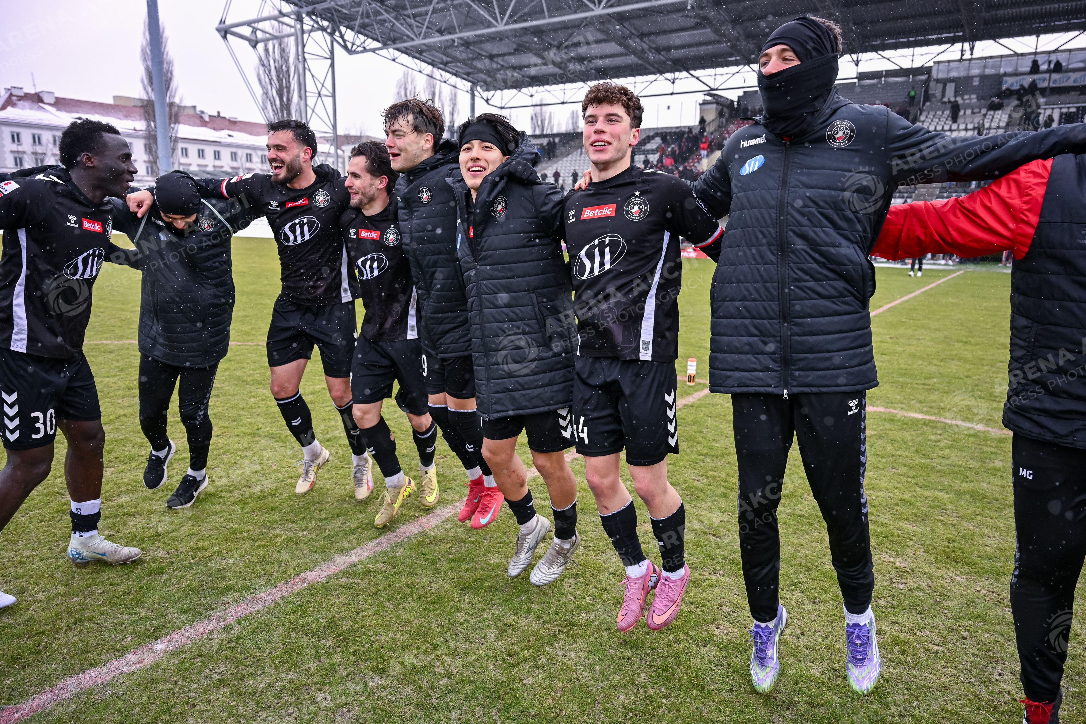 Warszawa 08.02.2026. Pilka nozna Betclic I Liga sezon 2025/2026 kolejka 20 mecz: Polonia Warszawa - Stal Mielec --- Football Betclic I League season 2025/2026 round 20 match: Polonia Warsaw - Stal Mielec nz SOULEYMANE CISSE NIKITA VASIN DANI VEGA RADOSC ZE ZWYCIESTWA , ZWYCIESTWO WYGRANA EMOCJE Fot. Igor Jakubowski / Arena Akcji