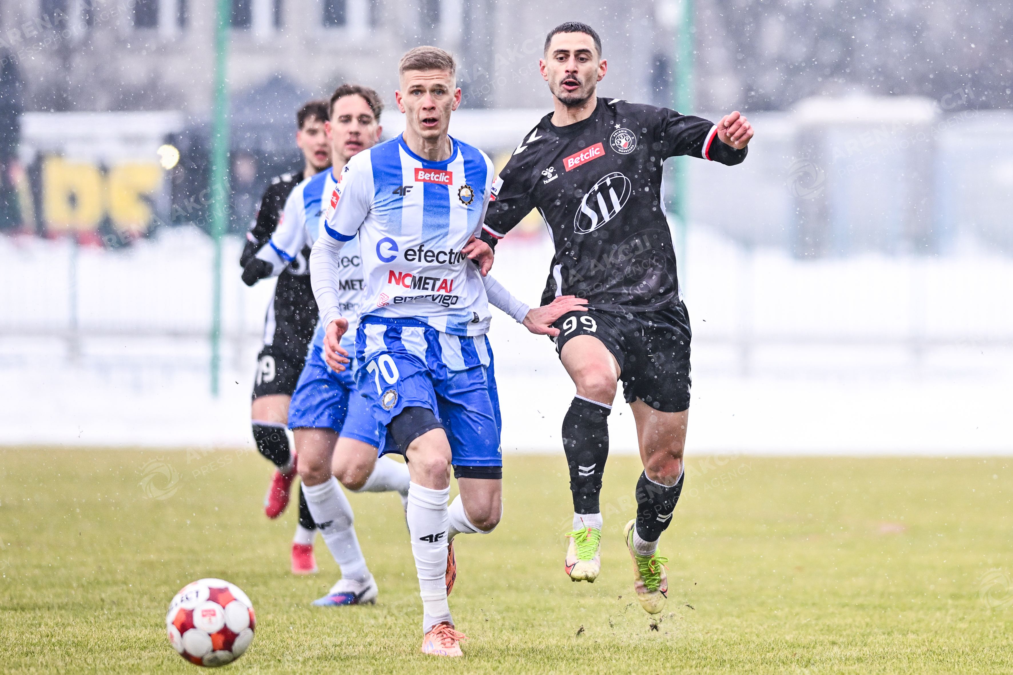 Warszawa 08.02.2026. Pilka nozna Betclic I Liga sezon 2025/2026 kolejka 20 mecz: Polonia Warszawa - Stal Mielec --- Football Betclic I League season 2025/2026 round 20 match: Polonia Warsaw - Stal Mielec nz YEGOR TSYKALO ILKAY DURMUS Fot. Igor Jakubowski / Arena Akcji