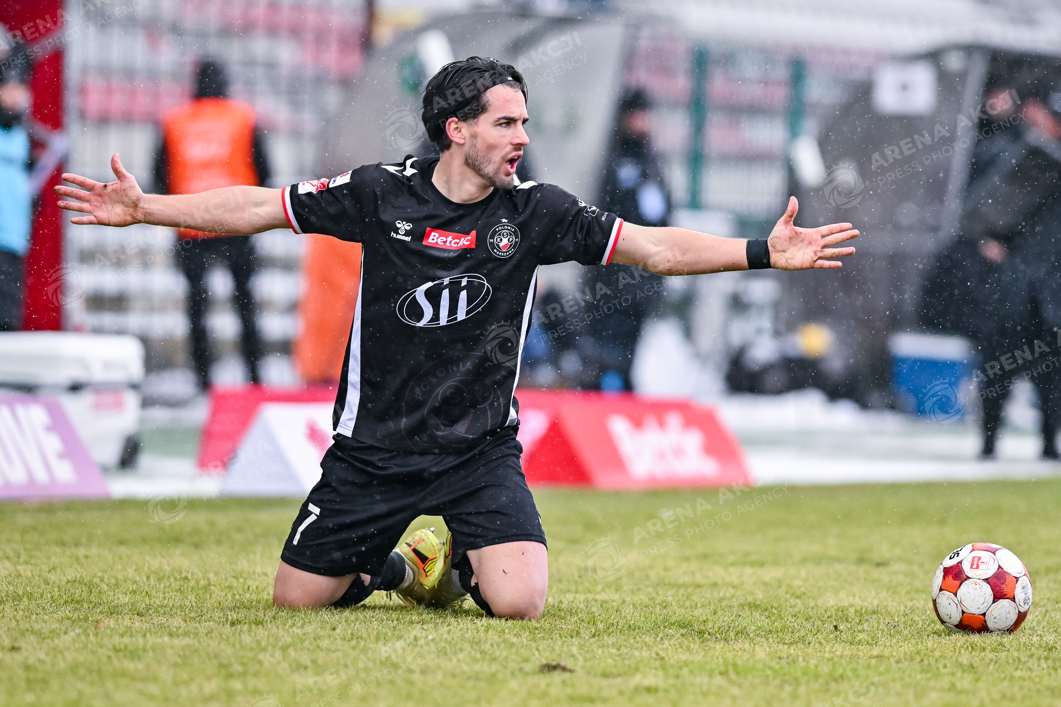 Warszawa 08.02.2026. Pilka nozna Betclic I Liga sezon 2025/2026 kolejka 20 mecz: Polonia Warszawa - Stal Mielec --- Football Betclic I League season 2025/2026 round 20 match: Polonia Warsaw - Stal Mielec nz DANI VEGA SYLWETKA ZLOSC SMUTEK PLACZ EMOCJE Fot. Igor Jakubowski / Arena Akcji