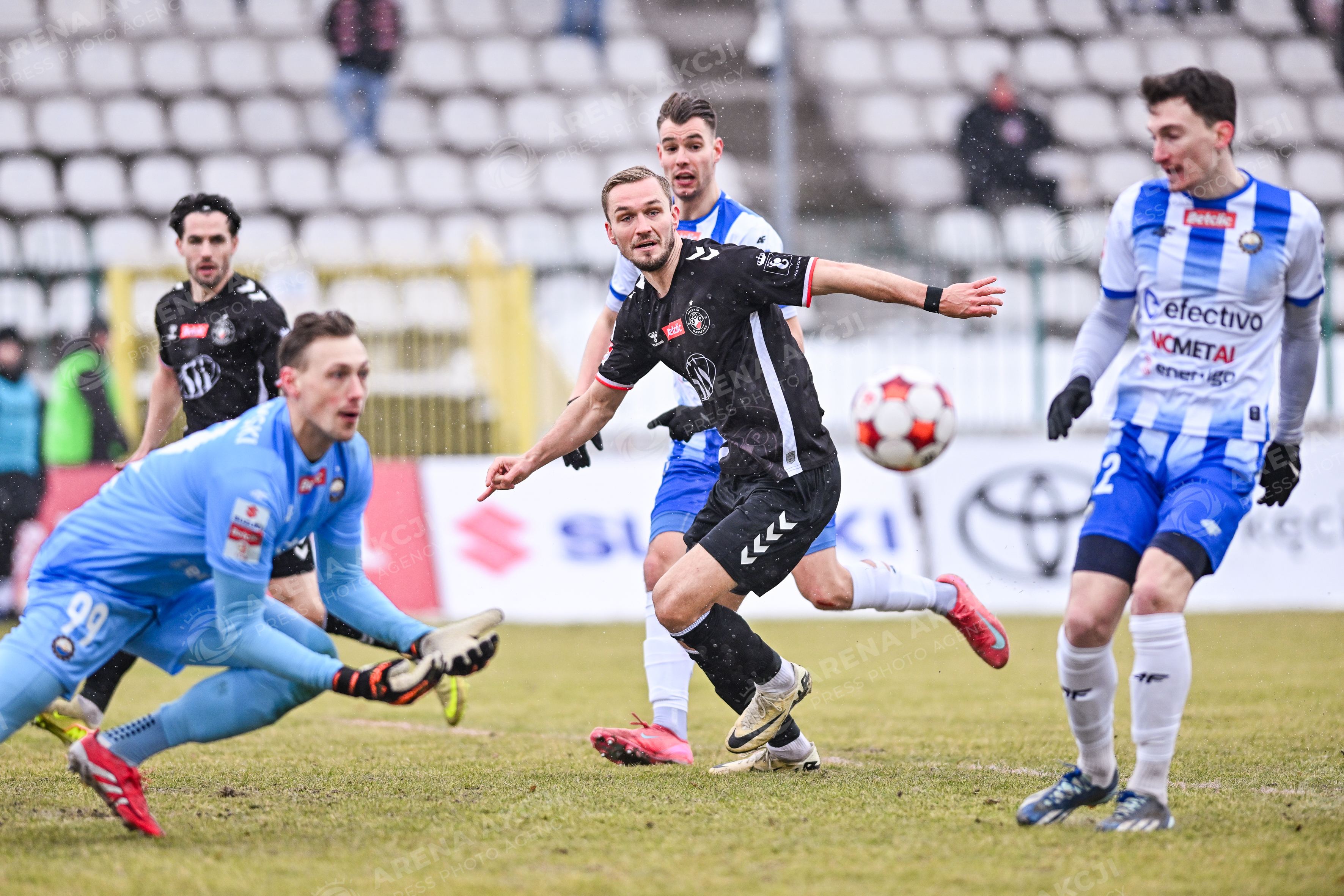 Warszawa 08.02.2026. Pilka nozna Betclic I Liga sezon 2025/2026 kolejka 20 mecz: Polonia Warszawa - Stal Mielec --- Football Betclic I League season 2025/2026 round 20 match: Polonia Warsaw - Stal Mielec nz MACIEJ GOSTOMSKI LUKASZ ZJAWINSKI Fot. Igor Jakubowski / Arena Akcji