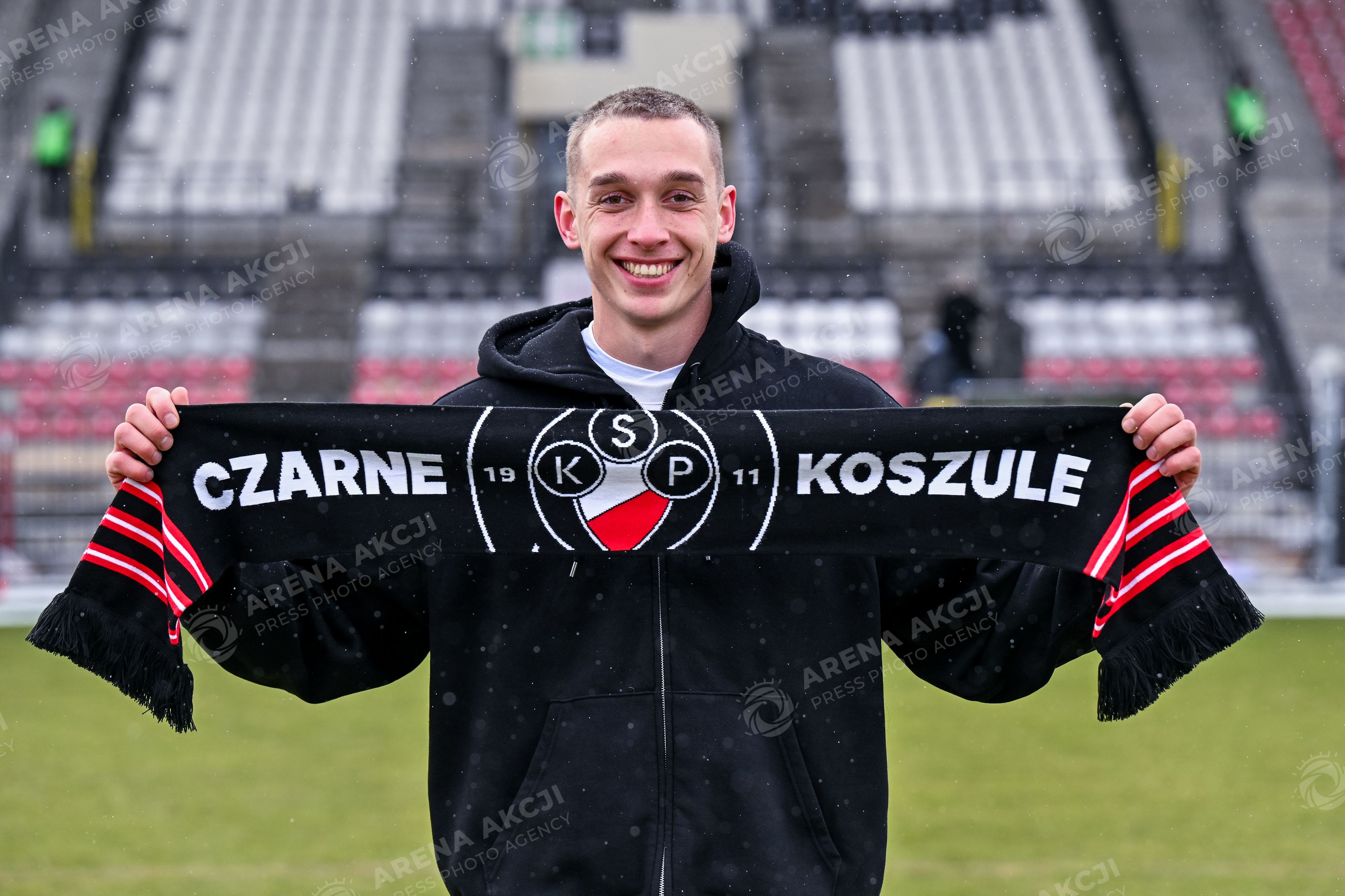 Warszawa 08.02.2026. Pilka nozna Betclic I Liga sezon 2025/2026 kolejka 20 mecz: Polonia Warszawa - Stal Mielec --- Football Betclic I League season 2025/2026 round 20 match: Polonia Warsaw - Stal Mielec nz JAKUB BUDNICKI NOWY PILKARZ POLONII CZARNYCH KOSZUL Fot. Igor Jakubowski / Arena Akcji