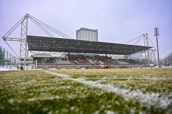 Warszawa 08.02.2026. Pilka nozna Betclic I Liga sezon 2025/2026 kolejka 20 mecz: Polonia Warszawa - Stal Mielec --- Football Betclic I League season 2025/2026 round 20 match: Polonia Warsaw - Stal Mielec nz STADION POLONII WARSZAWA PRZED MECZEM Fot. Igor Jakubowski / Arena Akcji