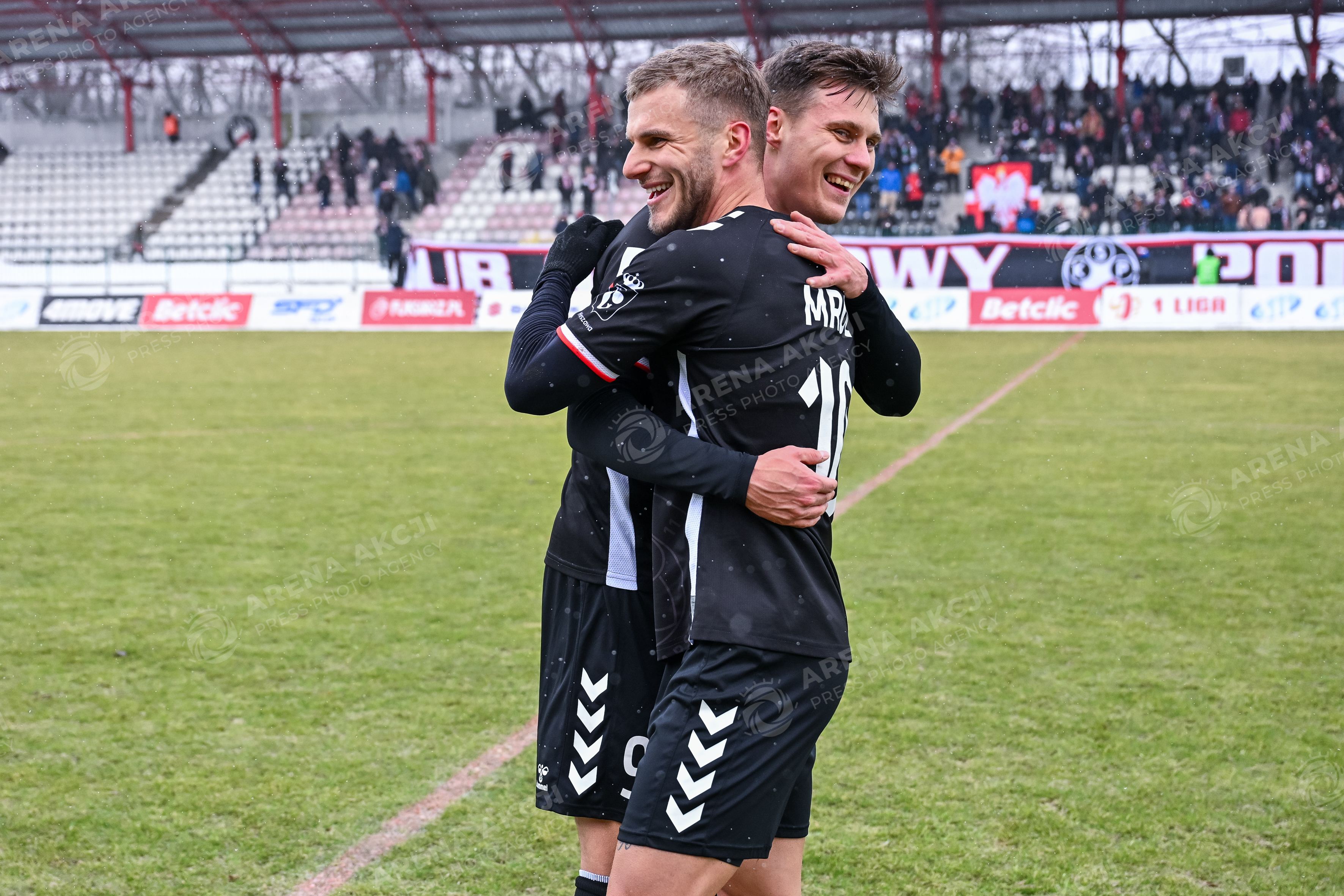 Warszawa 08.02.2026. Pilka nozna Betclic I Liga sezon 2025/2026 kolejka 20 mecz: Polonia Warszawa - Stal Mielec --- Football Betclic I League season 2025/2026 round 20 match: Polonia Warsaw - Stal Mielec nz MICHAL BAJDUR KACPER KOSTORZ RADOSC ZE ZWYCIESTWA , ZWYCIESTWO WYGRANA EMOCJE Fot. Igor Jakubowski / Arena Akcji