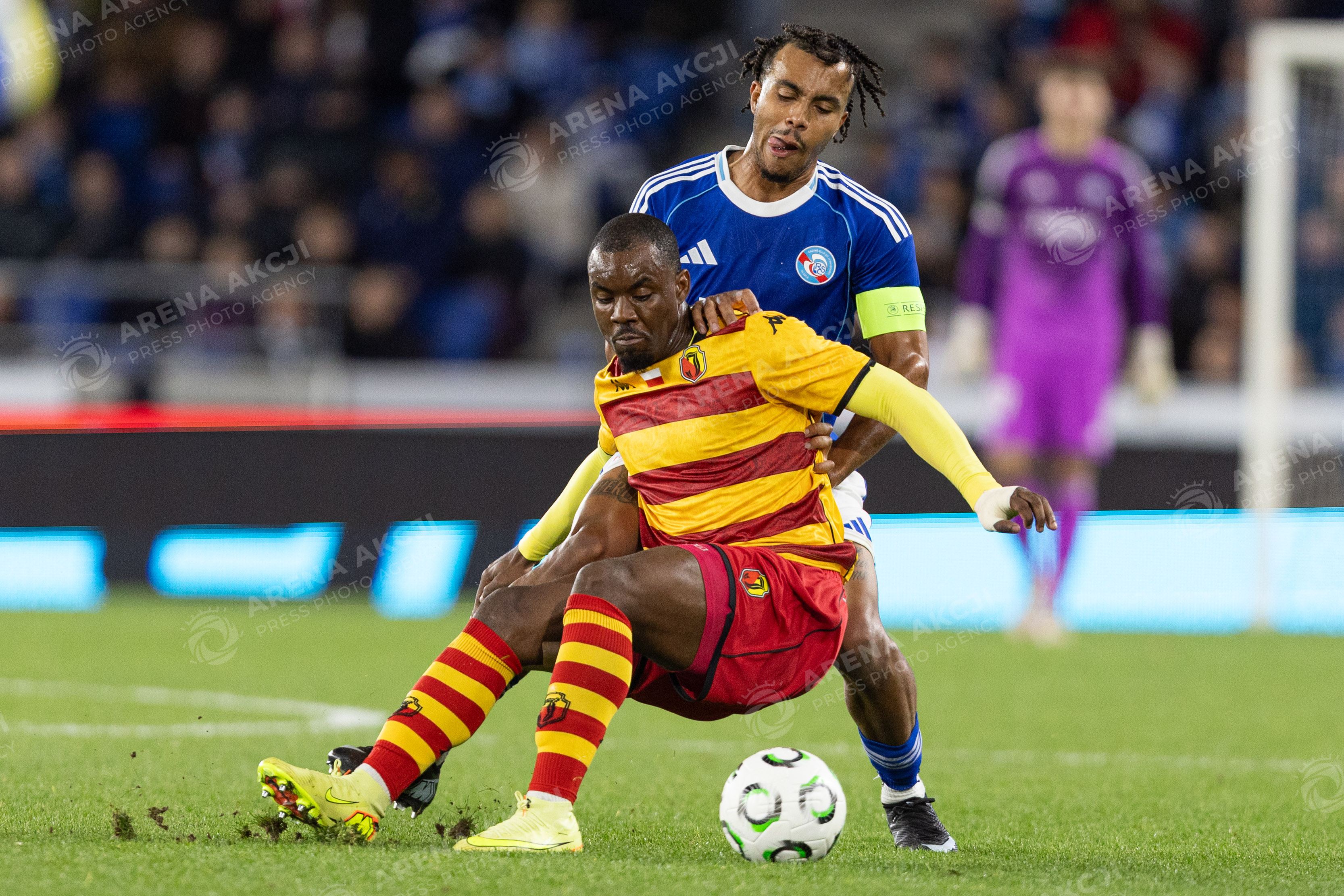 2025.10.23 Strasbourg Liga Konferencji UEFA kolejka 2 sezon 2025/2026 Racing Strasbourg - Jagiellonia Bialystok Nz Afimico Pululu Guela Doue Foto Sathire KELPA / ArenaAkcji 2025.10.23 Strasbourg football UEFA Conference League round 2 season 2025/2026 match Racing Strasbourg - Jagiellonia Bialystok Credit: Sathire KELPA / ArenaAkcji