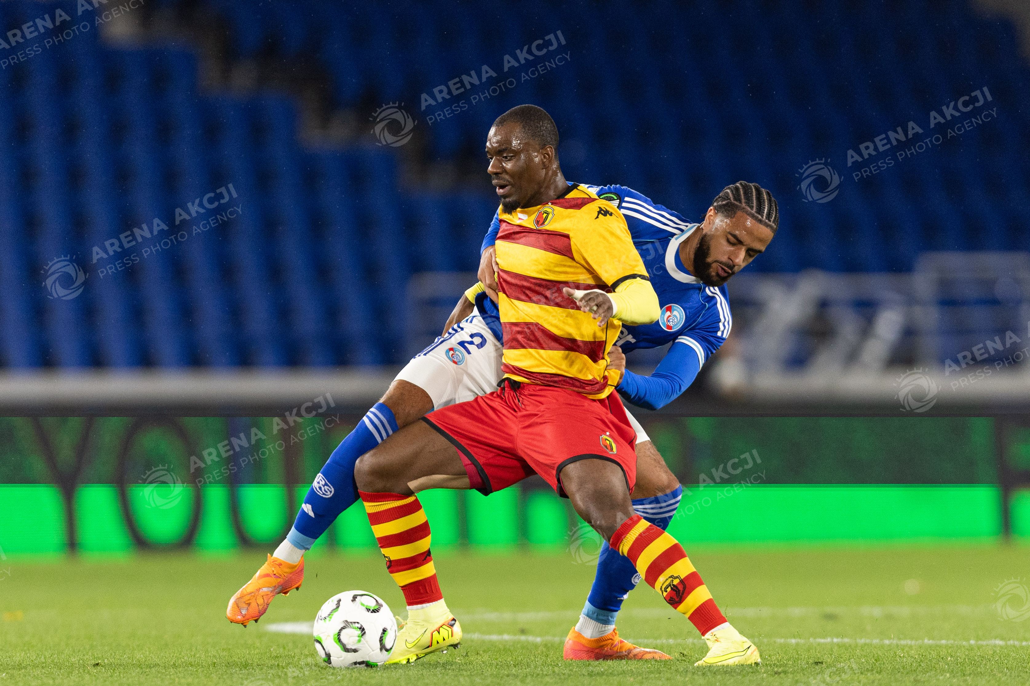 2025.10.23 Strasbourg Liga Konferencji UEFA kolejka 2 sezon 2025/2026 Racing Strasbourg - Jagiellonia Bialystok Nz Afimico Pululu Andrew Omobamidele Foto Sathire KELPA / ArenaAkcji 2025.10.23 Strasbourg football UEFA Conference League round 2 season 2025/2026 match Racing Strasbourg - Jagiellonia Bialystok Credit: Sathire KELPA / ArenaAkcji