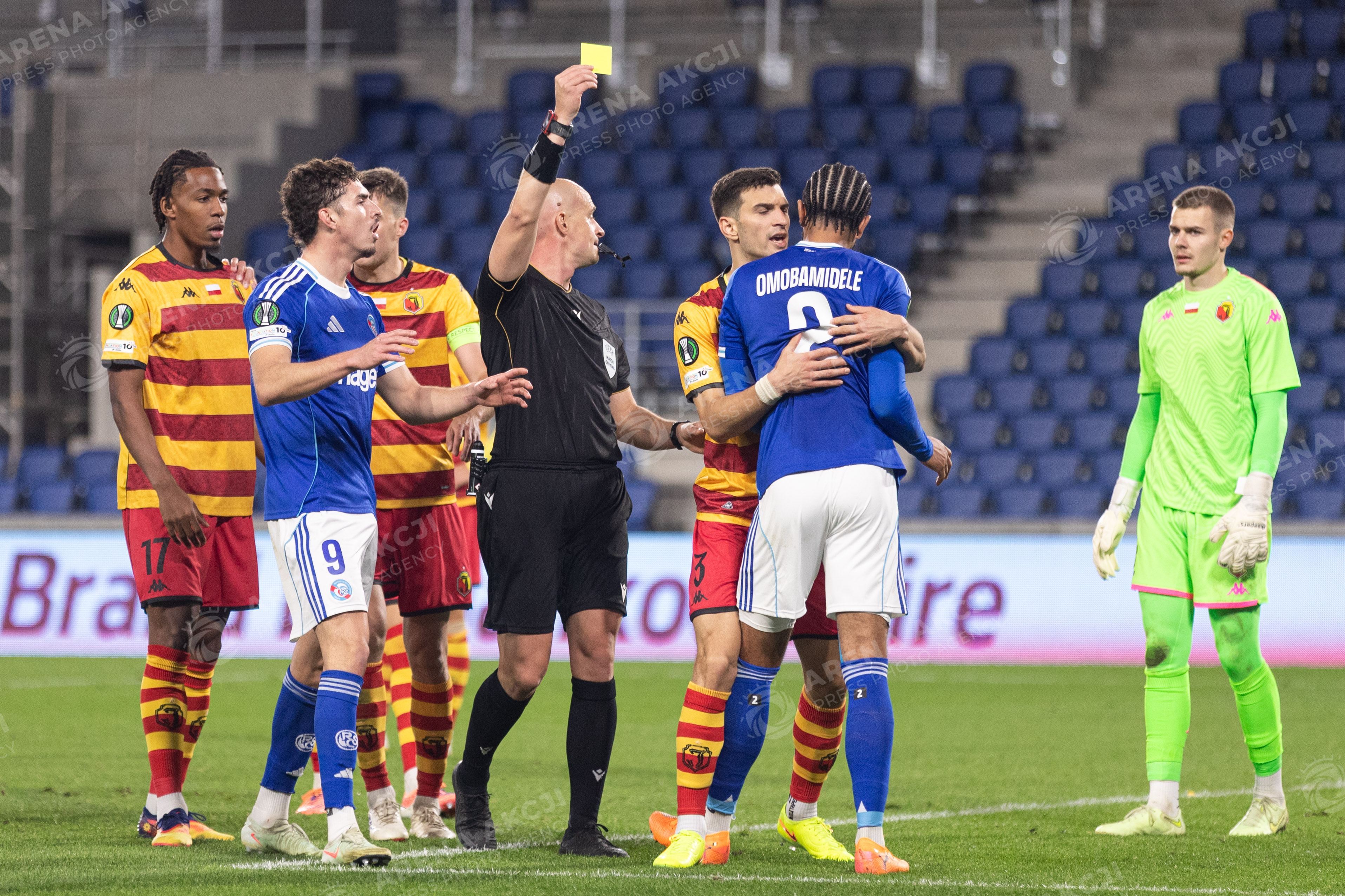 2025.10.23 Strasbourg Liga Konferencji UEFA kolejka 2 sezon 2025/2026 Racing Strasbourg - Jagiellonia Bialystok Nz Dario Bel zolta kartka Foto Sathire KELPA / ArenaAkcji 2025.10.23 Strasbourg football UEFA Conference League round 2 season 2025/2026 match Racing Strasbourg - Jagiellonia Bialystok Credit: Sathire KELPA / ArenaAkcji