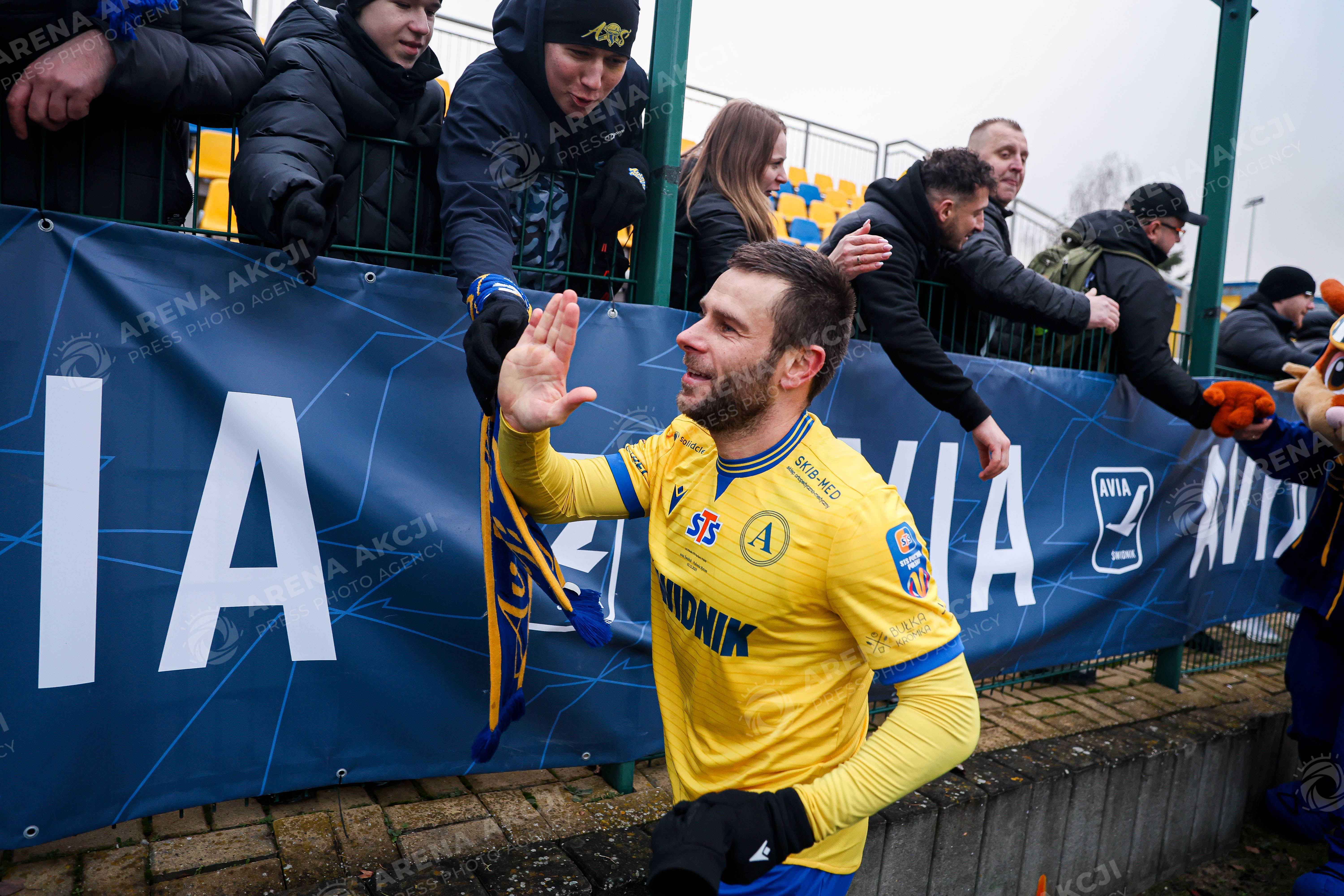 Swidnik 03.12.2025. Pilka nozna STS Puchar Polski sezon 2025/2026 1/8 finalu mecz: Avia Swidnik - Polonia Bytom --- Football STS Polish Cup season 2025/2026 1/8 final match: Avia Swidnik - Polonia Bytom nz Patryk Malecki podziekowanie kibicom Fot. Igor Jakubowski / Arena Akcji