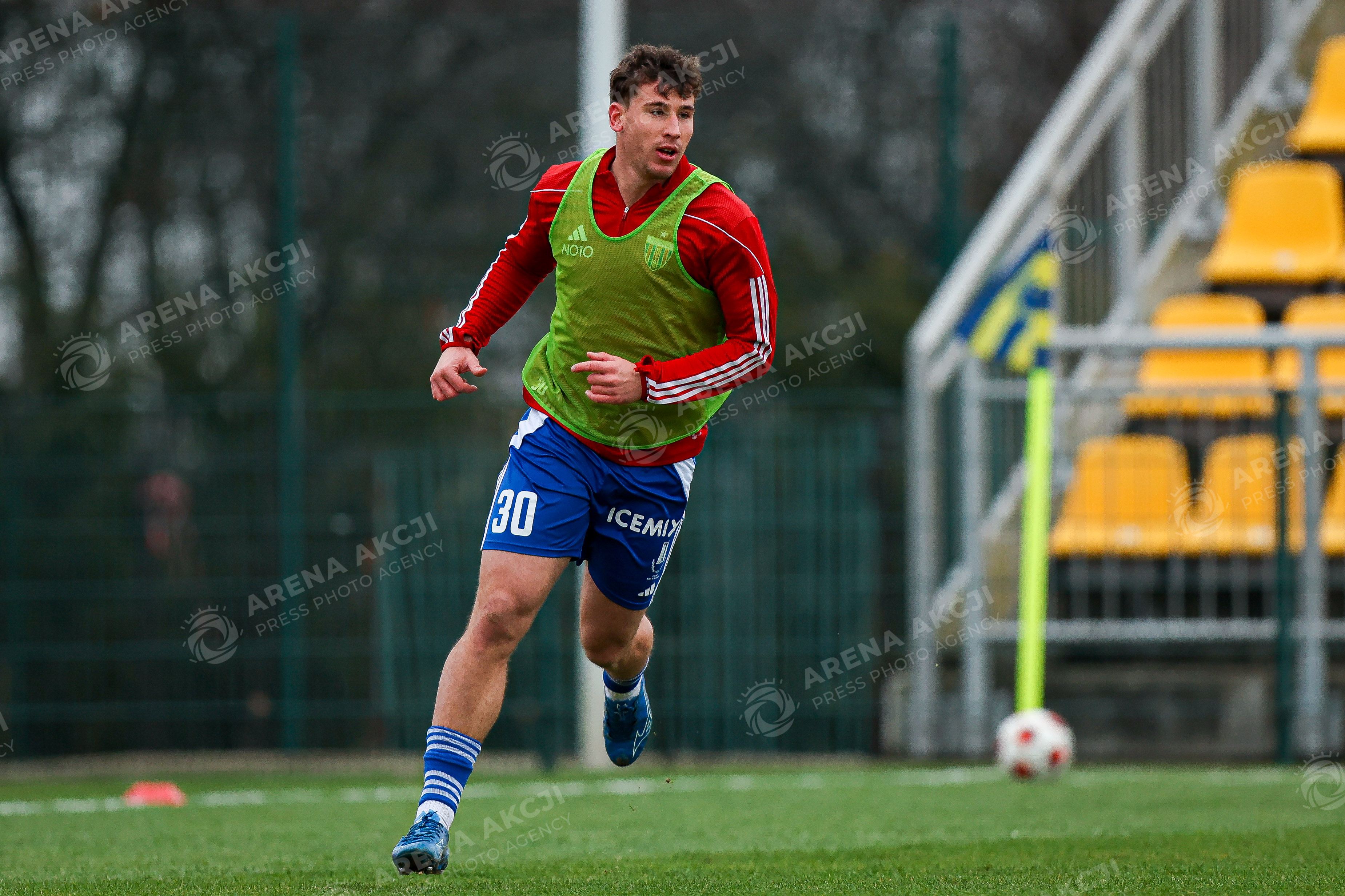 Swidnik 03.12.2025. Pilka nozna STS Puchar Polski sezon 2025/2026 1/8 finalu mecz: Avia Swidnik - Polonia Bytom --- Football STS Polish Cup season 2025/2026 1/8 final match: Avia Swidnik - Polonia Bytom nz rozgrzewka Oskar Krzyzak Fot. Igor Jakubowski / Arena Akcji