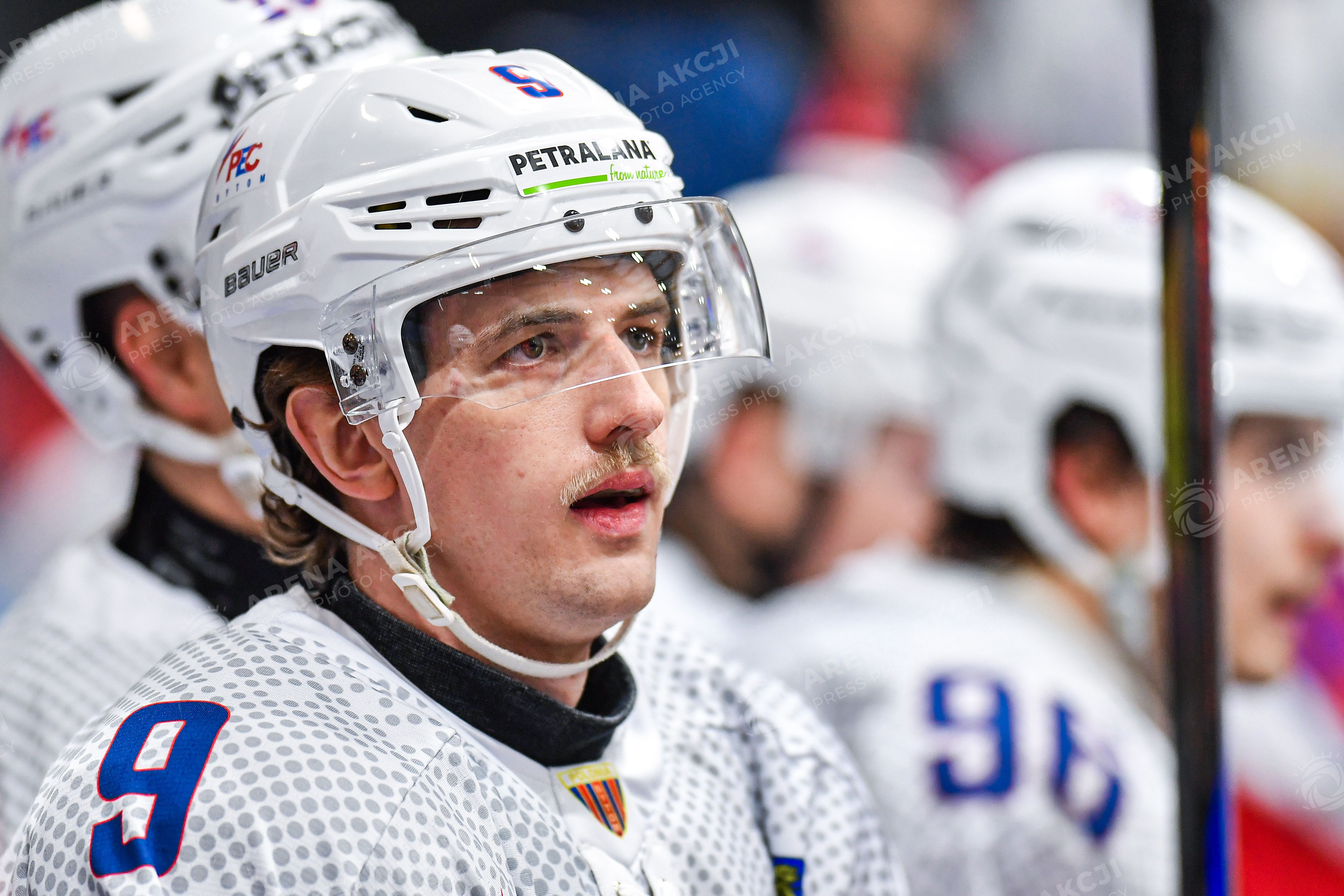Bytom 11.01.2026. Hokej na lodzie Tauron Hokej Liga sezon 2025/2026 kolejka 34 mecz: Polonia Bytom - KH Sanok --- Ice Hockey Polish Hockey League season 2025/2026 round 34 match: Polonia Bytom - KH Sanok nz Dominik Jarosz Fot. Igor Jakubowski / Arena Akcji