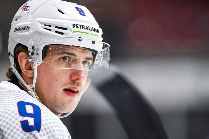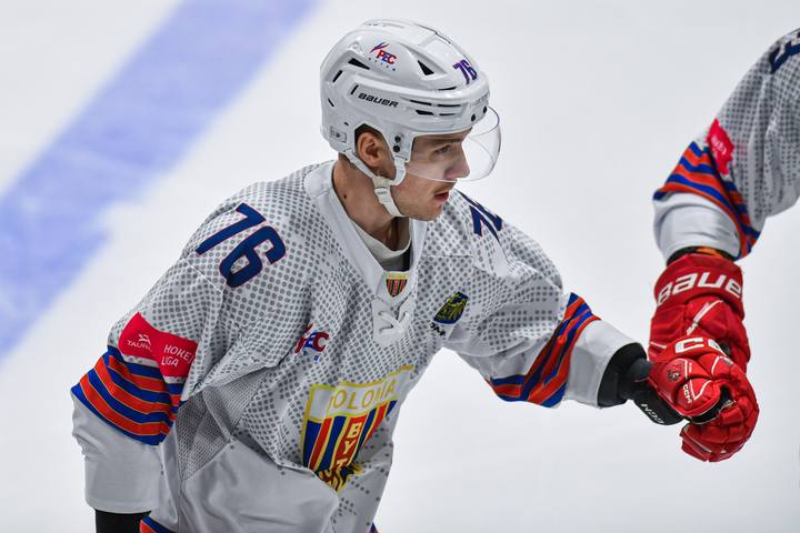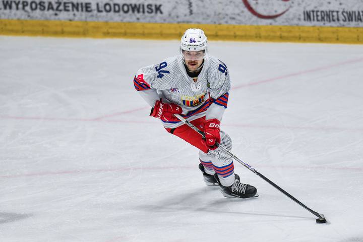 Bytom 11.01.2026. Hokej na lodzie Tauron Hokej Liga sezon 2025/2026 kolejka 34 mecz: Polonia Bytom - KH Sanok --- Ice Hockey Polish Hockey League season 2025/2026 round 34 match: Polonia Bytom - KH Sanok nz Andrei Gusov Fot. Igor Jakubowski / Arena Akcji