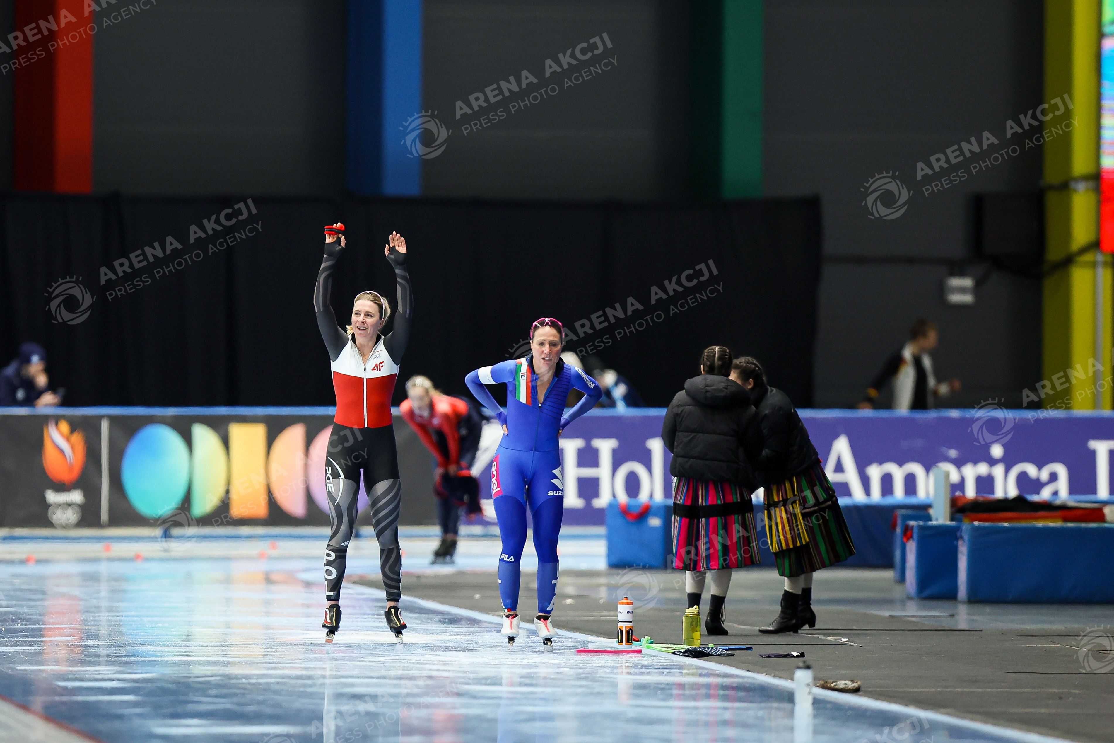 Tomaszow Mazowiecki 10.01.2025 ISU Mistrzostwa Europy Lyzwiarstwo Szybkie dzien 2 --- ISU European Speed Skating Championships at the Arena Lodowa day 2 ( two ) Nz Francesca Lollobrigida Natalia Czerwonka Fot. Igor Jakubowski / Arena Akcji