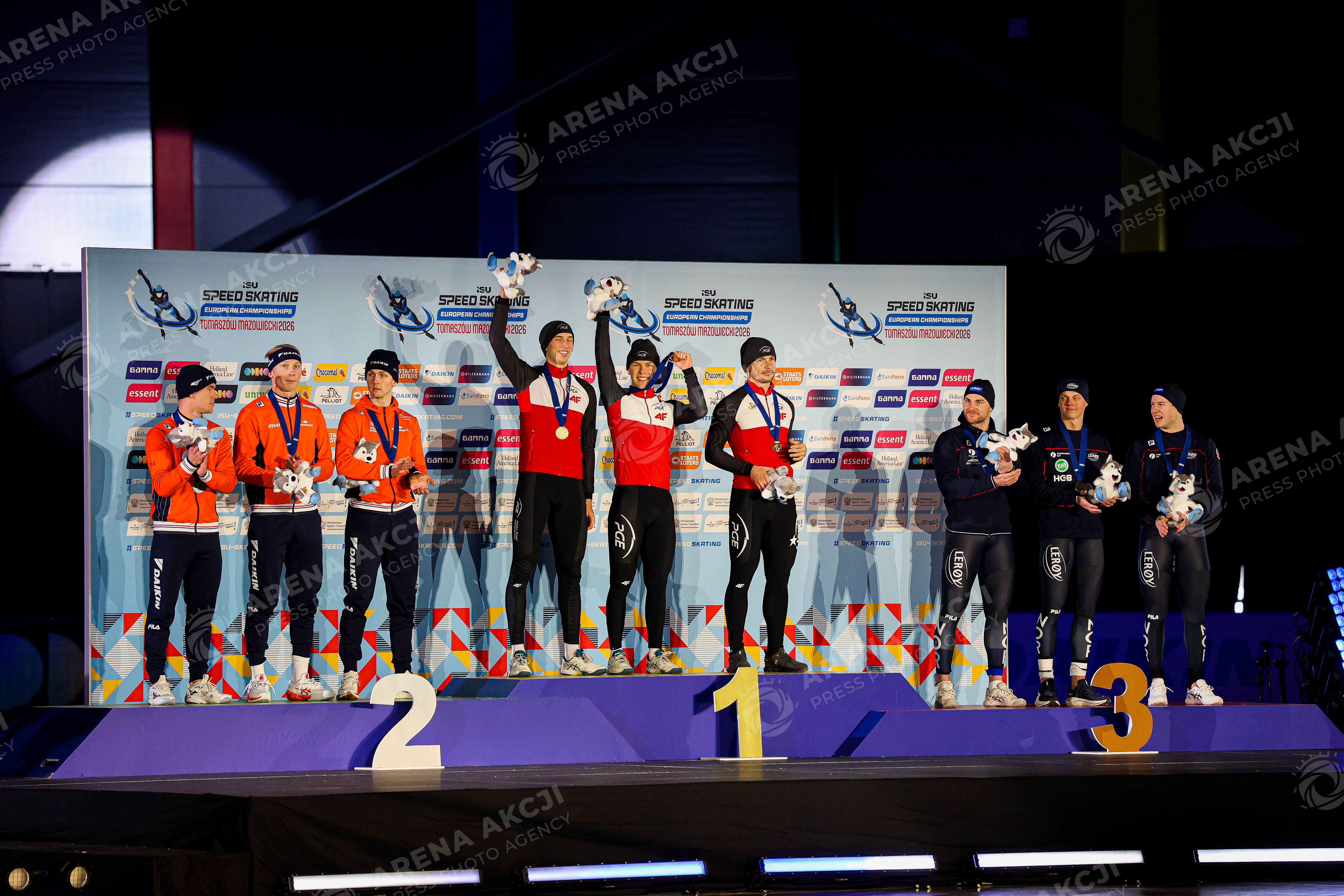 Tomaszow Mazowiecki 10.01.2025 ISU Mistrzostwa Europy Lyzwiarstwo Szybkie dzien 2 --- ISU European Speed Skating Championships at the Arena Lodowa day 2 ( two ) Nz podium Fot. Igor Jakubowski / Arena Akcji