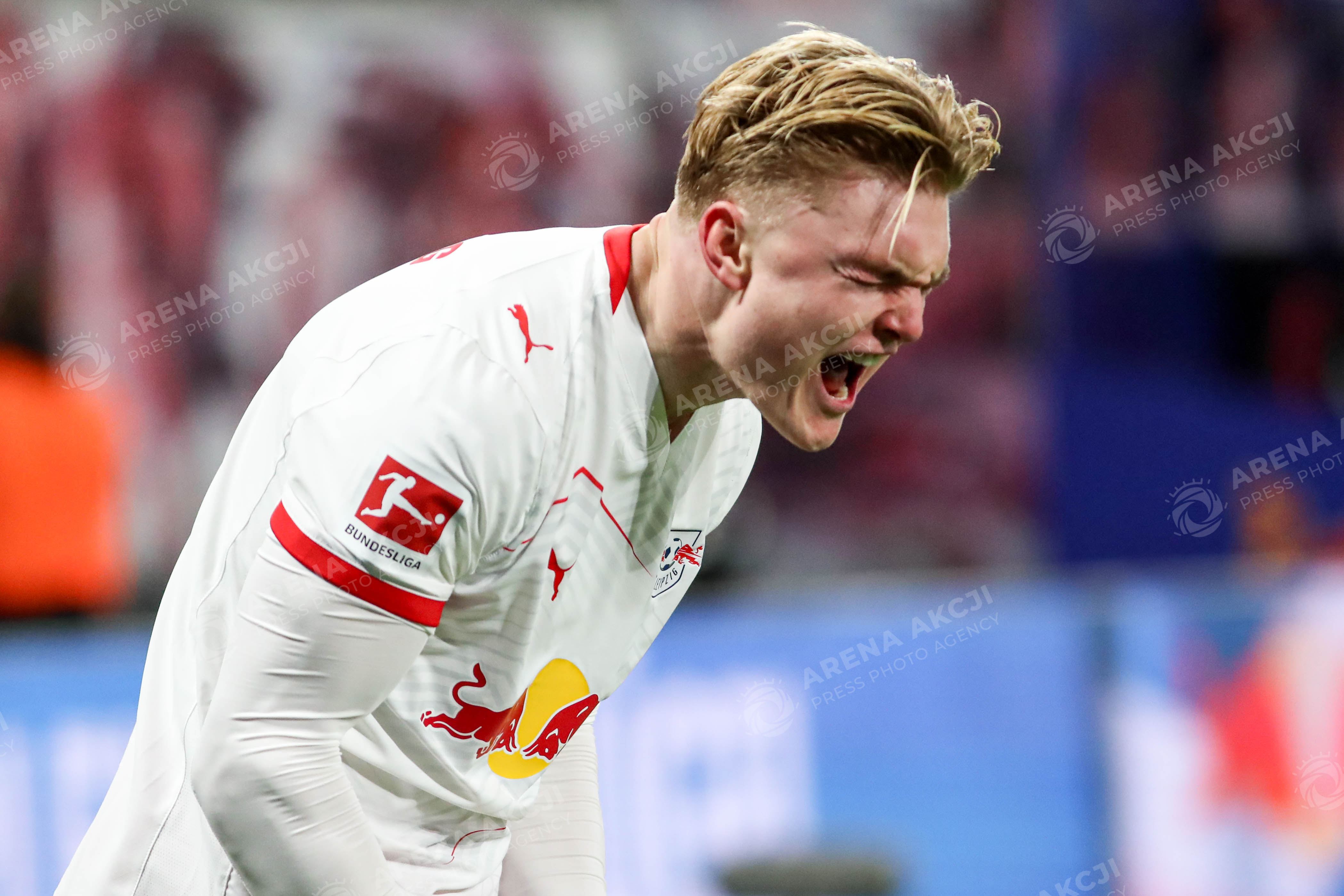 Lipsk 06.12.2025. Pilka nozna Bundesliga sezon 2025/2026 kolejka 13 mecz: RB Lipsk - Eintracht Frankfurt --- Football Bundesliga season 2025/2026 round 13 match: RB Leipzig - Eintracht Frankfurt nz. Conrad Harder Fot. Kacper Staniec / Arena Akcji