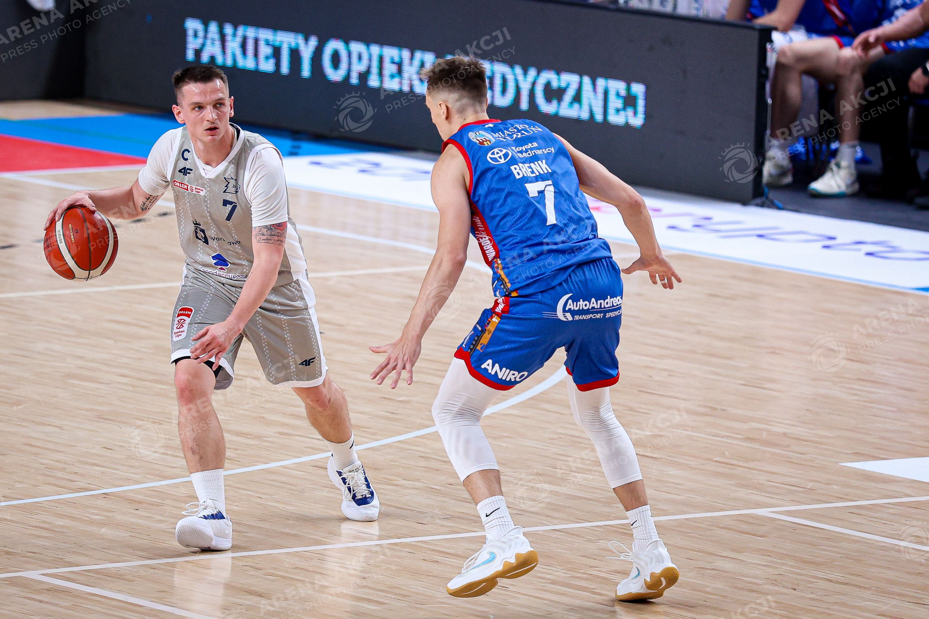 Warszawa 14.12.2025. Koszykowka ORLEN Basket Liga sezon 2025/2026 kolejka 11 mecz: Dziki Warszawa - Twarde Pierniki Torun --- Basketball ORLEN Basket League season 2025/2026 round 11 match: Dziki Warsaw - Twarde Pierniki Torun nz Grzegorz Grochowski Adam Brenk Fot. Igor Jakubowski / Arena Akcji