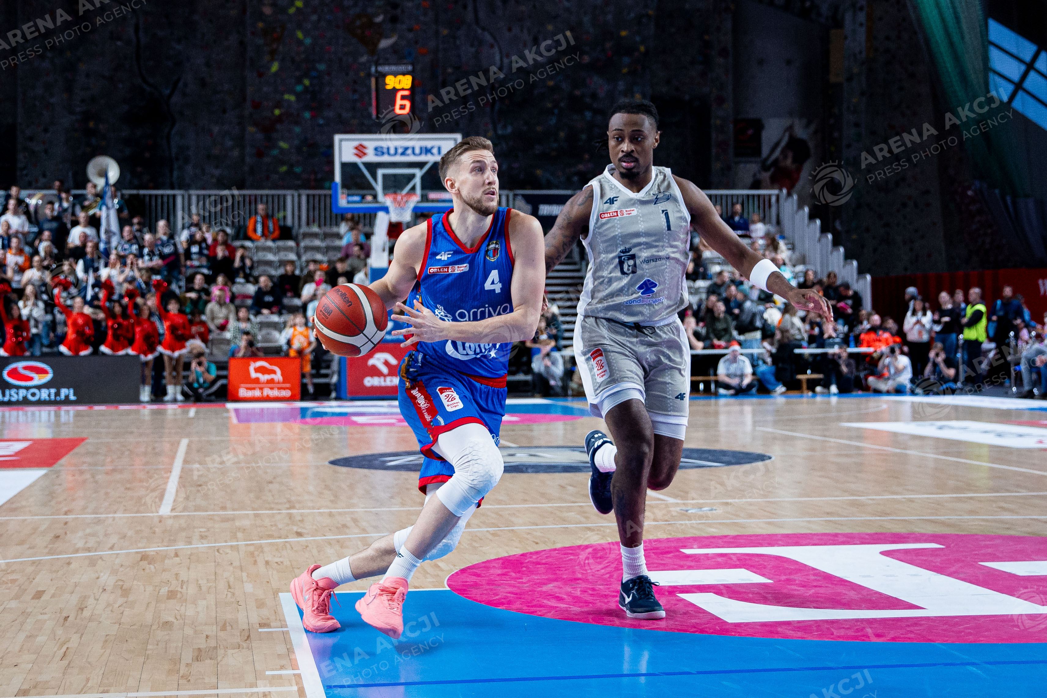 Warszawa 14.12.2025. Koszykowka ORLEN Basket Liga sezon 2025/2026 kolejka 11 mecz: Dziki Warszawa - Twarde Pierniki Torun --- Basketball ORLEN Basket League season 2025/2026 round 11 match: Dziki Warsaw - Twarde Pierniki Torun nz Mateusz Szlachetka Landrius Horton Fot. Igor Jakubowski / Arena Akcji