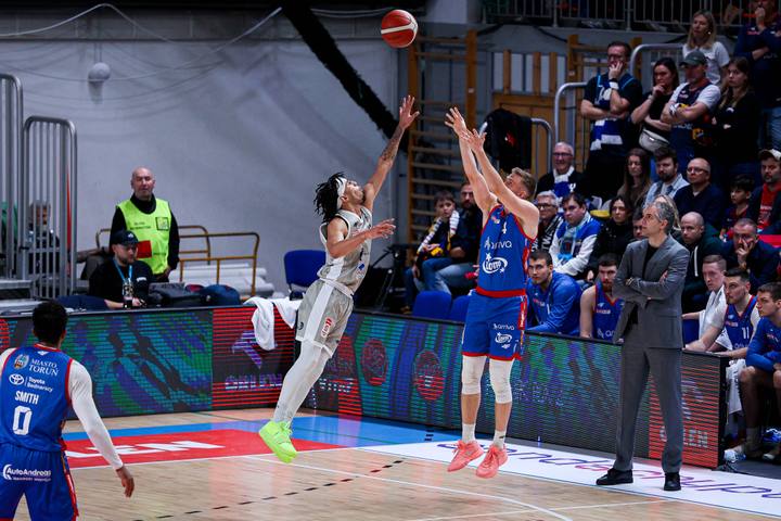 Warszawa 14.12.2025. Koszykowka ORLEN Basket Liga sezon 2025/2026 kolejka 11 mecz: Dziki Warszawa - Twarde Pierniki Torun --- Basketball ORLEN Basket League season 2025/2026 round 11 match: Dziki Warsaw - Twarde Pierniki Torun nz Lukasz Frackiewicz Fot. Igor Jakubowski / Arena Akcji