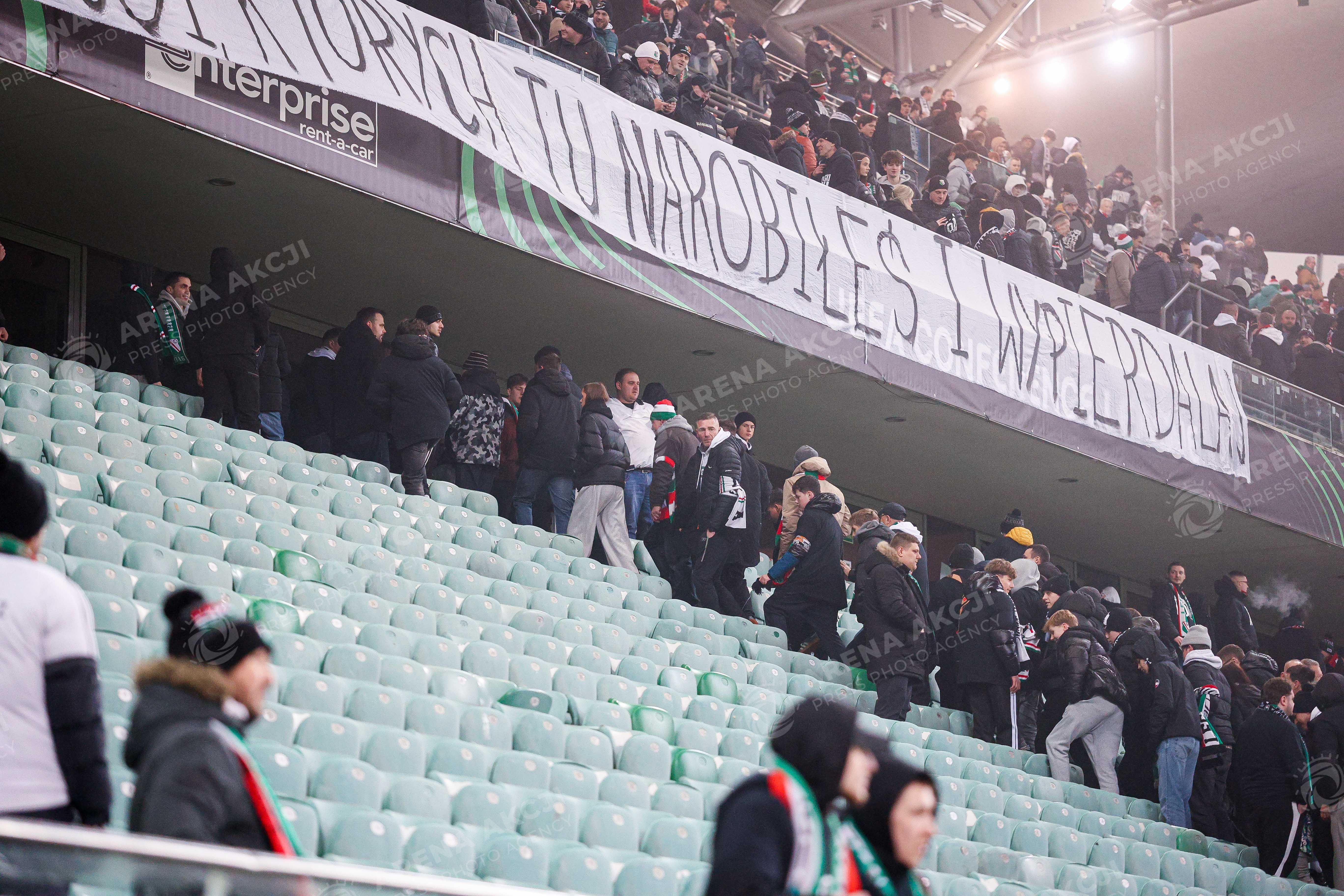 Warszawa 18.12.2025. Pilka nozna Liga Konferencji UEFA sezon 2025/2026 kolejka 6 mecz: Legia Warszawa - Lincoln Red Imps --- Football UEFA Conference League season 2025/2026 round 6 match: Legia Warsaw - Lincoln Red Imps nz kibice wychodza ze stadionu zyleta Fot. Igor Jakubowski / Arena Akcji