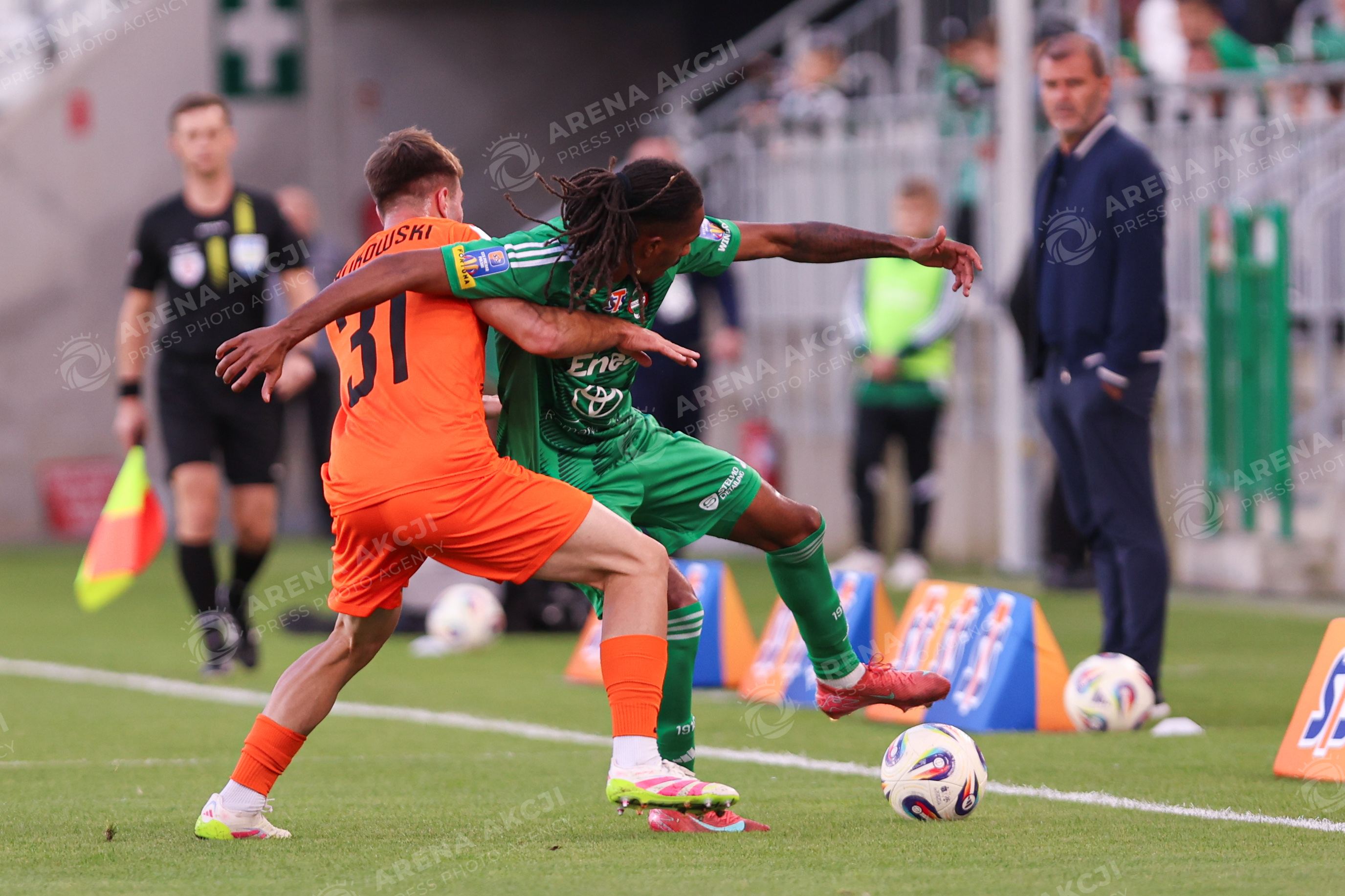 Radom 25.09.2025 Pilka nozna STS Puchar Polski sezon 2025/2026 runda 1 mecz: Radomiak Radom - Zaglebie Lubin --- Football STS Polish Cup season 2025/2026 round 1 match: Radomiak Radom - Zaglebie Lubin nz Igor Orlikowski Romario Baro Fot. Igor Jakubowski / Arena Akcji
