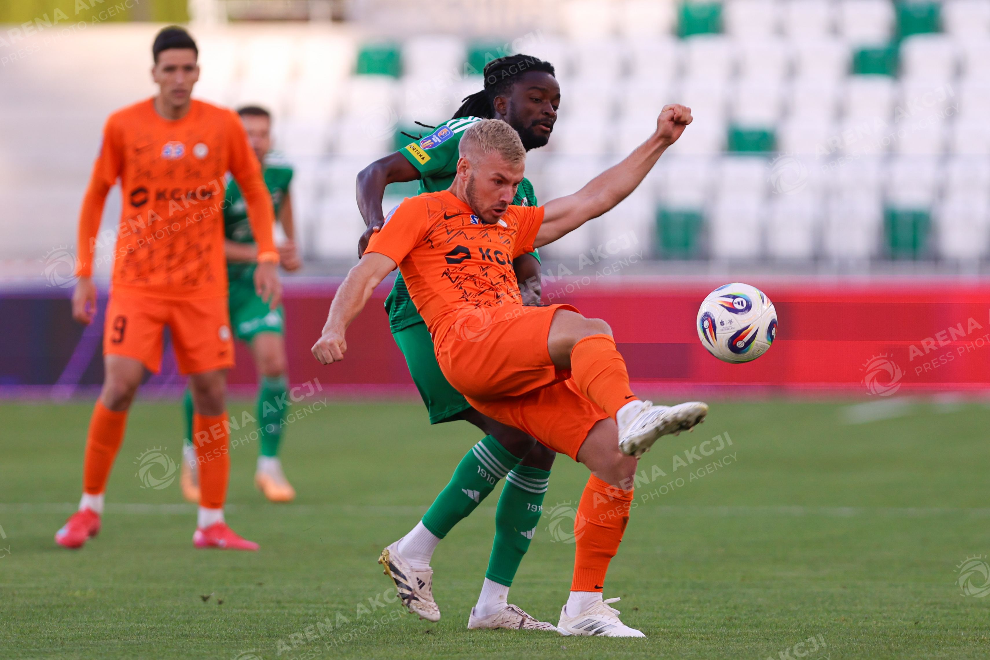 Radom 25.09.2025 Pilka nozna STS Puchar Polski sezon 2025/2026 runda 1 mecz: Radomiak Radom - Zaglebie Lubin --- Football STS Polish Cup season 2025/2026 round 1 match: Radomiak Radom - Zaglebie Lubin nz Tomasz Makowski Romario Baro Fot. Igor Jakubowski / Arena Akcji