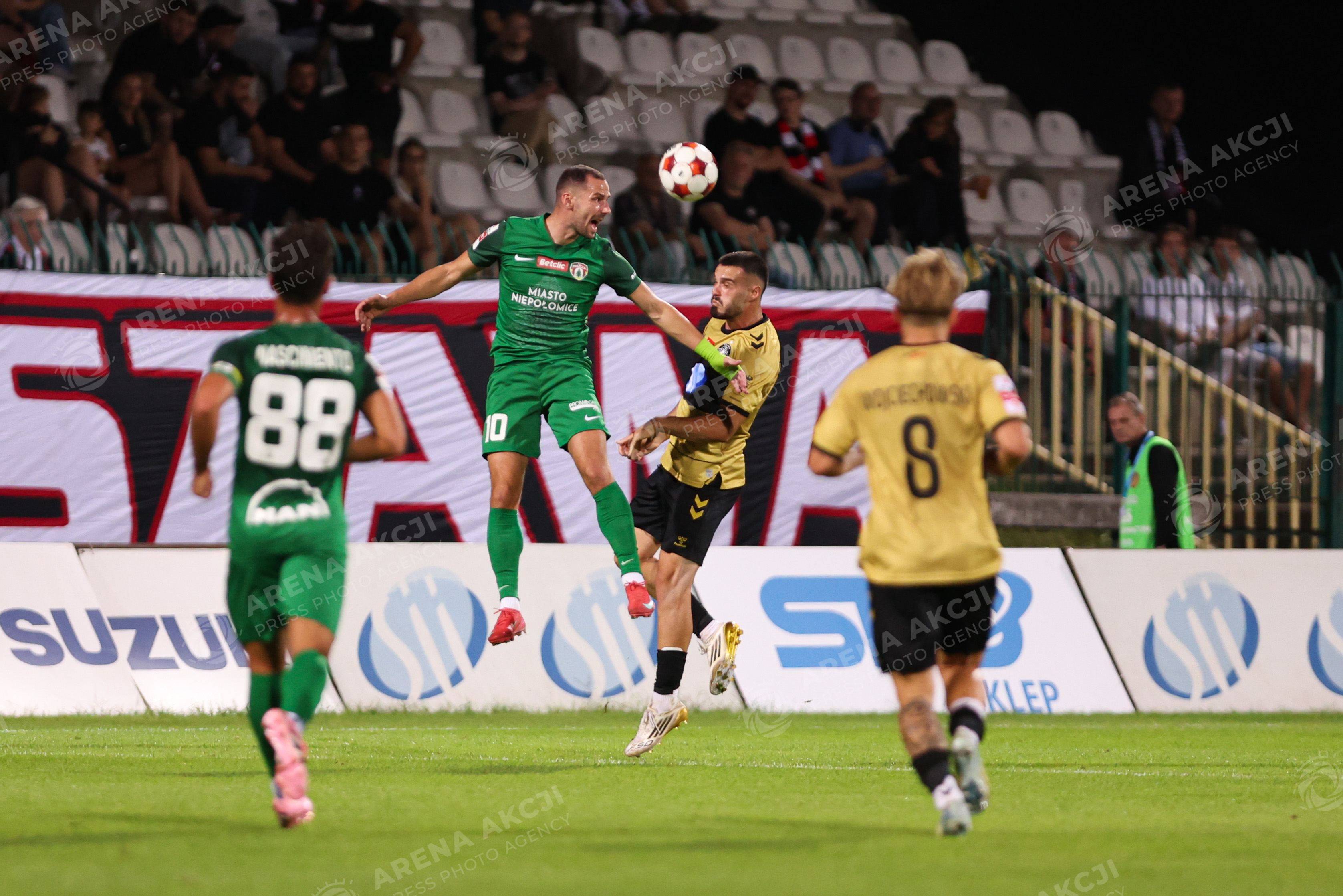 Warszawa 20.09.2025 Pilka nozna Betclic 1 Liga sezon 2025/2026 kolejka 10 mecz : Polonia Warszawa - Puszcza Niepolomice --- Football Betclic 1 st League season 2025/2026 round 10 match : Polonia Warszawa - Puszcza Niepolomice NZ Mateusz Cholewiak Hajdin Salihu Fot. Igor Jakubowski/Arena Akcji