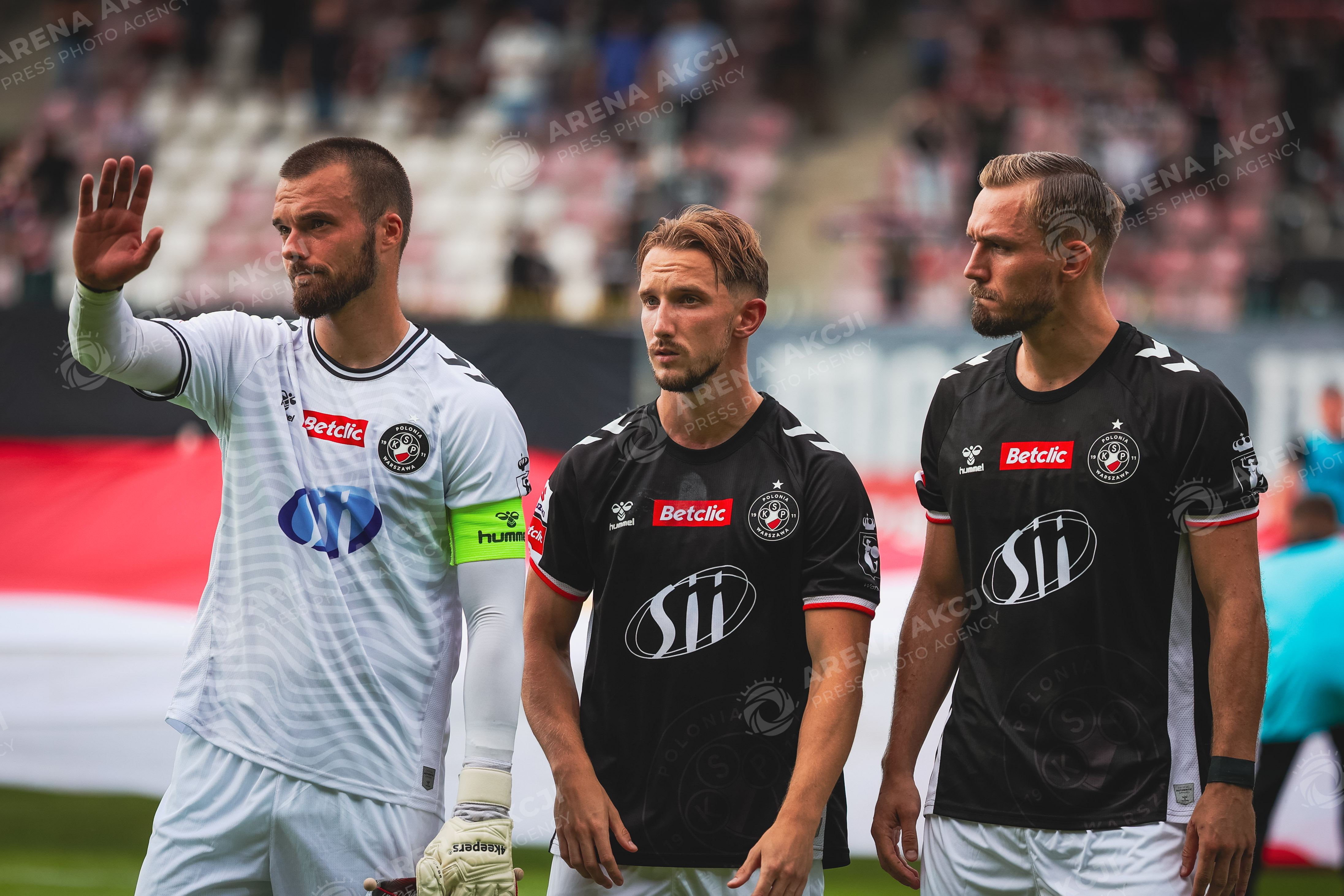 WARSZAWA 27.07.2025 PILKA NOZNA BETCLIC 1 LIGA MECZ : POLONIA WARSZAWA - GKS TYCHY a FOOTBALL POLISH SECOND DIVISION BETCLIC 1. LEAGUE MATCH - POLONIA WARSAW - GKS TYCHY NZ MATEUSZ KUCHTA PAWEL OLSZEWSKI LUKASZ ZJAWINSKI FOT. MAREK JEDRASIK / ARENA AKCJI