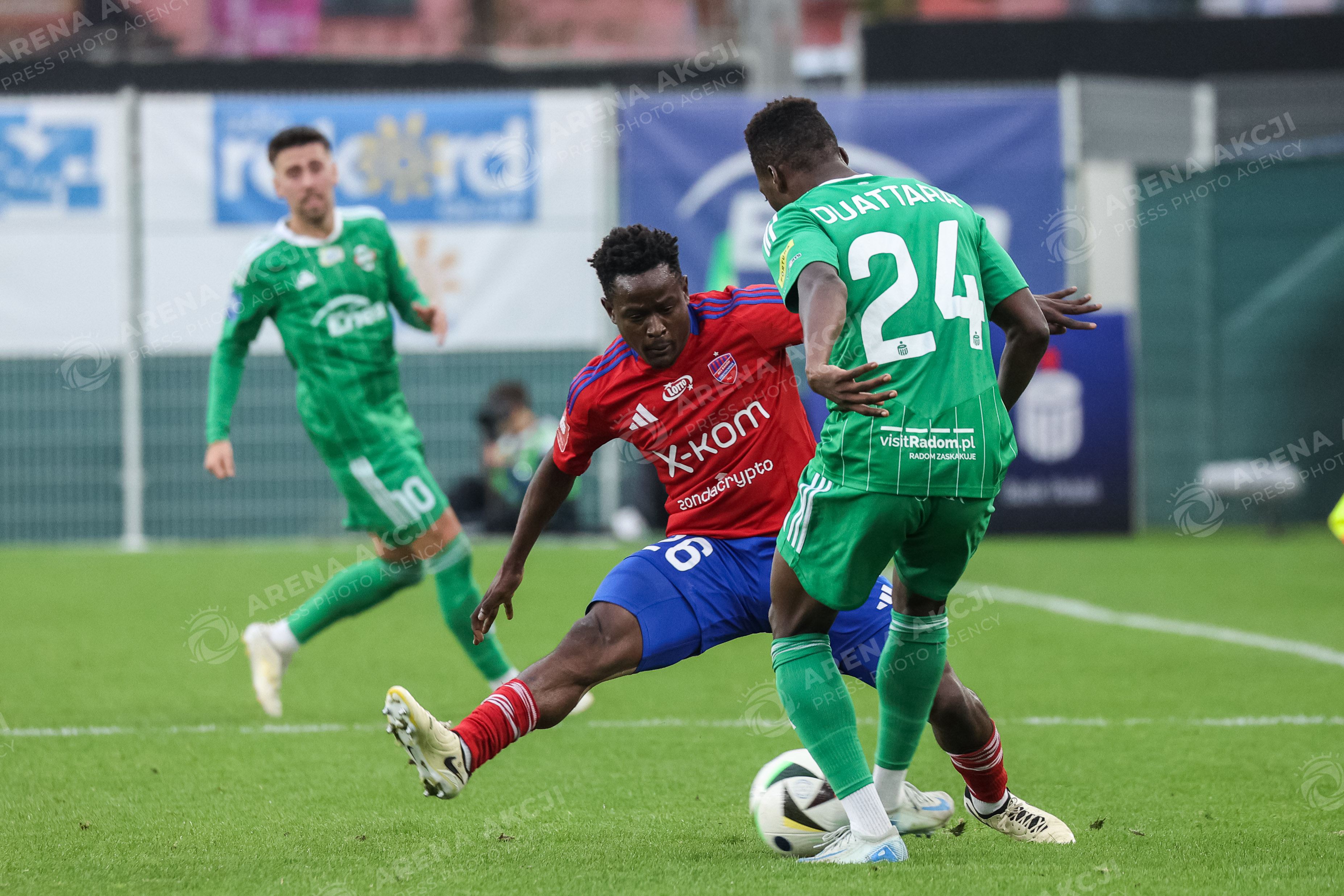 RADOM 05.10.2024 PILKA NOZNA MECZ 11. KOLEJKA PKO EKSTRAKLASA SEZON 2024/2025 POLISH FOOTBALL TOP LEAGUE MATCH IN RADOM: RADOMIAK RADOM - RAKOW CZESTOCHOWA N/Z ERICK OTIENO FOT. IGOR JAKUBOWSKI / ARENA AKCJI