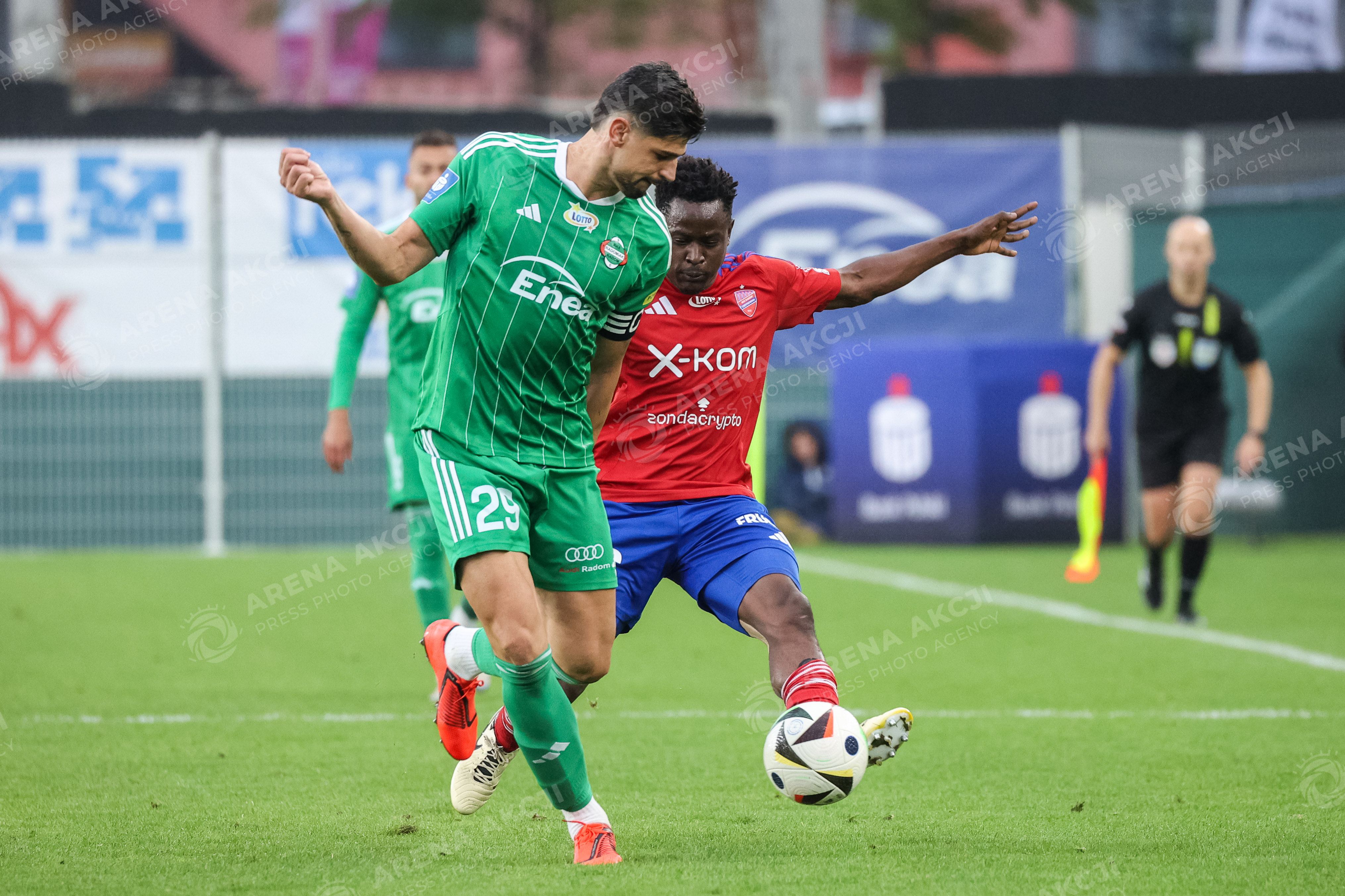 RADOM 05.10.2024 PILKA NOZNA MECZ 11. KOLEJKA PKO EKSTRAKLASA SEZON 2024/2025 POLISH FOOTBALL TOP LEAGUE MATCH IN RADOM: RADOMIAK RADOM - RAKOW CZESTOCHOWA N/Z RAPHAEL ROSSI, ERICK OTIENO FOT. IGOR JAKUBOWSKI / ARENA AKCJI