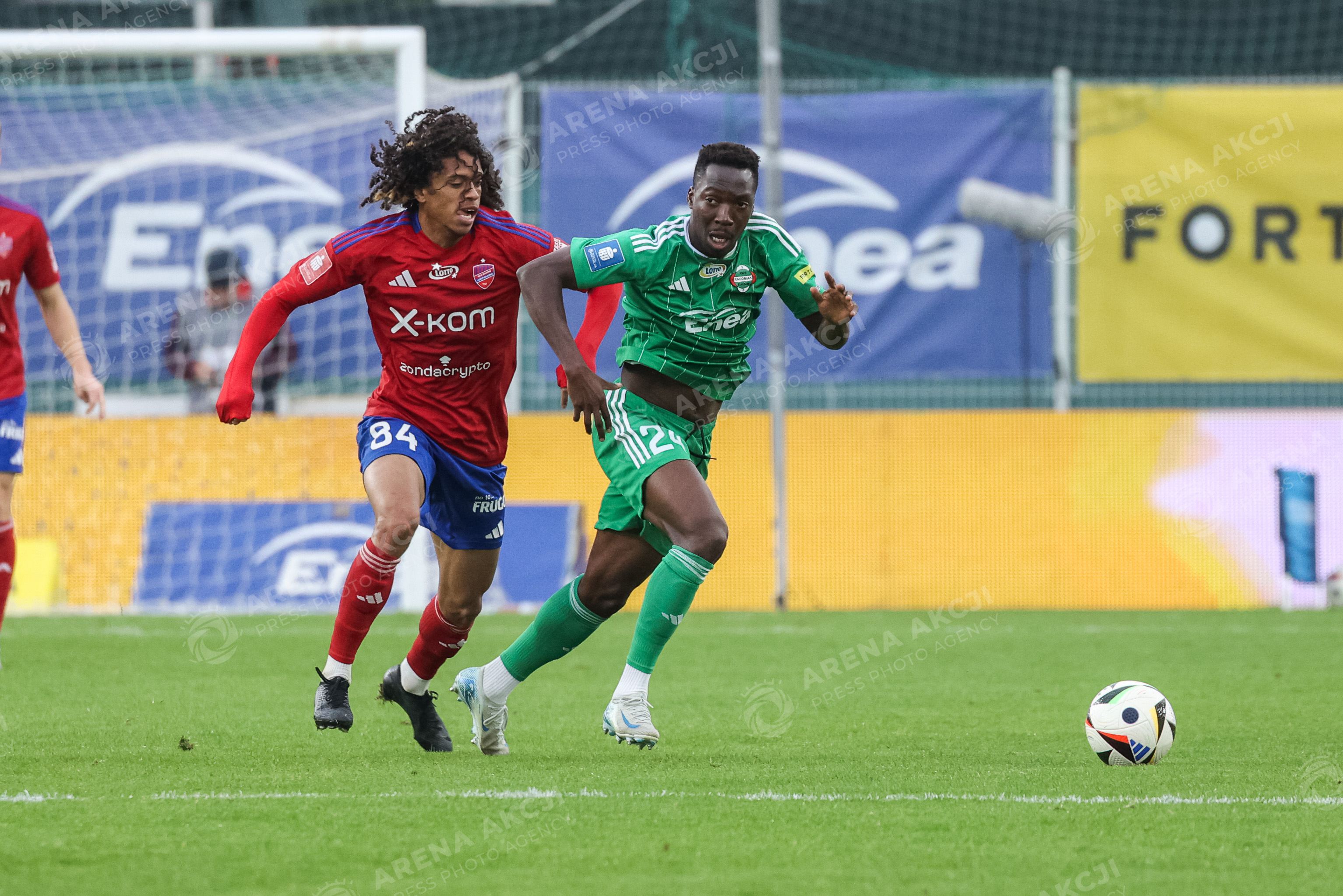 RADOM 05.10.2024 PILKA NOZNA MECZ 11. KOLEJKA PKO EKSTRAKLASA SEZON 2024/2025 POLISH FOOTBALL TOP LEAGUE MATCH IN RADOM: RADOMIAK RADOM - RAKOW CZESTOCHOWA N/Z ADRIANO, ZIE OUATTARA FOT. IGOR JAKUBOWSKI / ARENA AKCJI