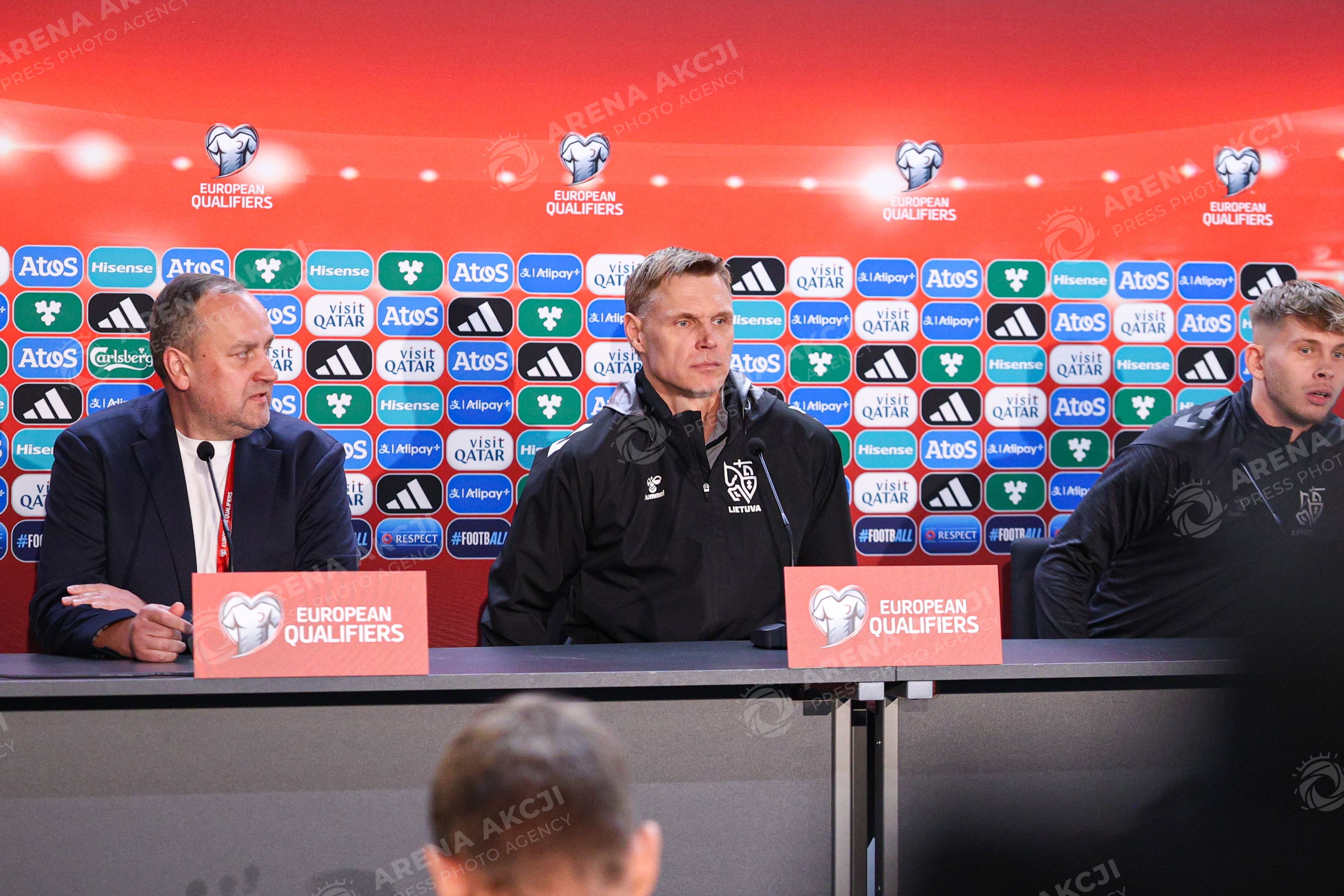 11.10.2025 Kowno. Pilka nozna. Konferencja prasowa reprezentacji Litwy przed meczem z reprezentacja Polski --- Kaunas. Lithuania football national team press conference Nz Edgaras Jankauskas Artemijus Tutyskinas Fot. Igor Jakubowski / Arena Akcji
