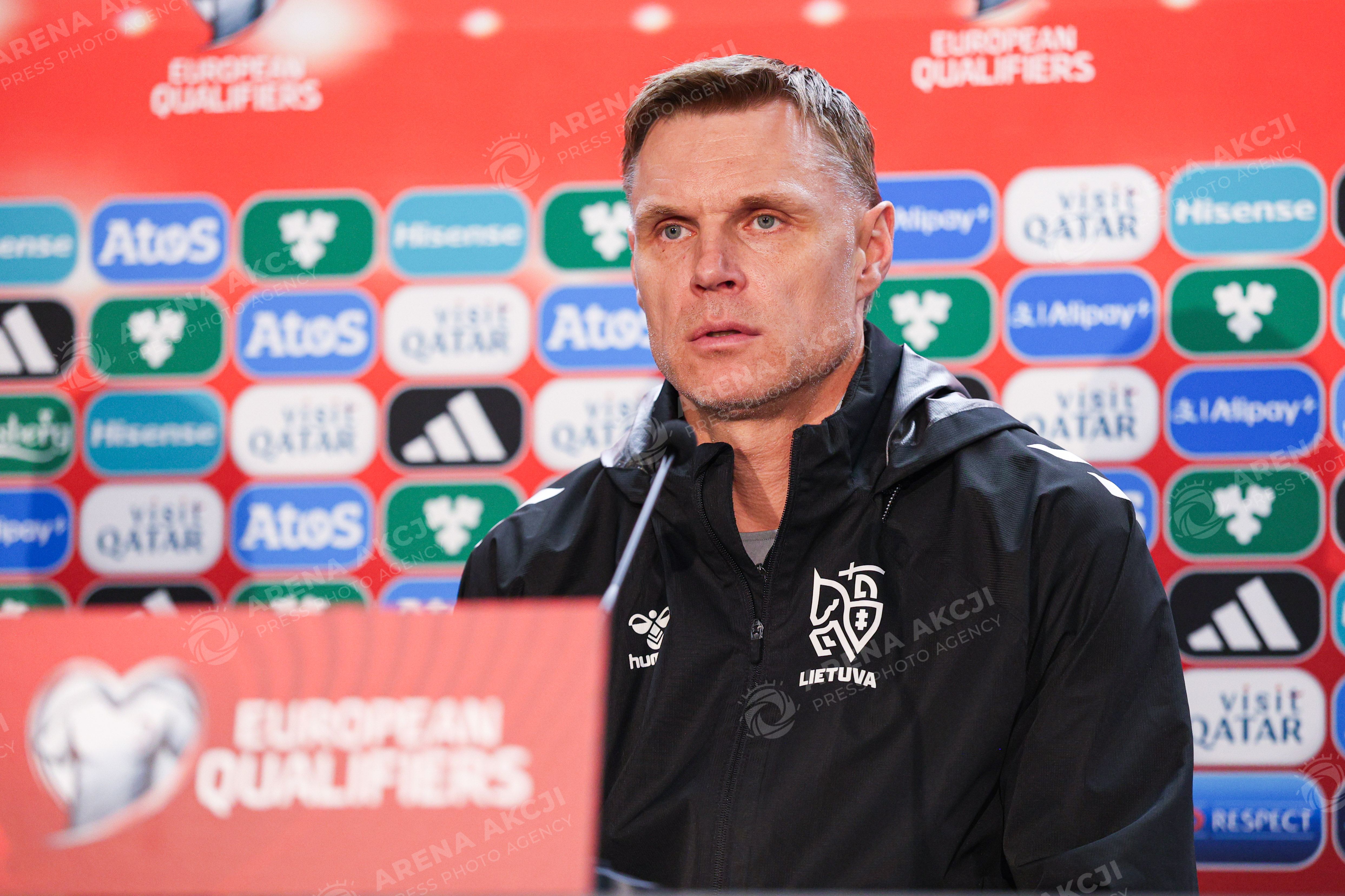 11.10.2025 Kowno. Pilka nozna. Konferencja prasowa reprezentacji Litwy przed meczem z reprezentacja Polski --- Kaunas. Lithuania football national team press conference Nz Edgaras Jankauskas Fot. Igor Jakubowski / Arena Akcji