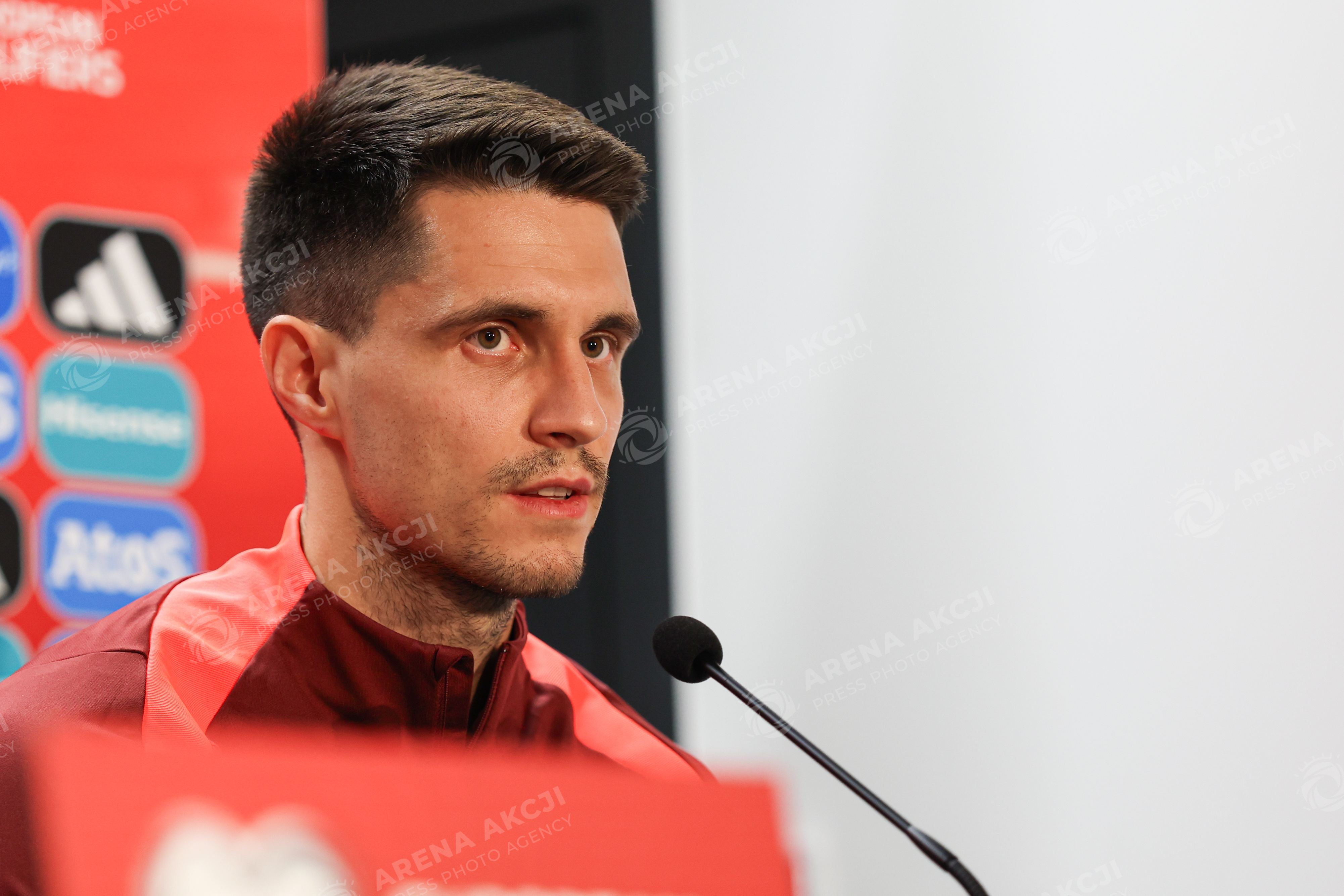 11.10.2025 Kowno. Pilka nozna. Konferencja prasowa reprezentacji Polski przed meczem z reprezentacja Litwy --- Kaunas. Polish football national team press conference Nz Bartosz Kapustka Fot. Igor Jakubowski / Arena Akcji