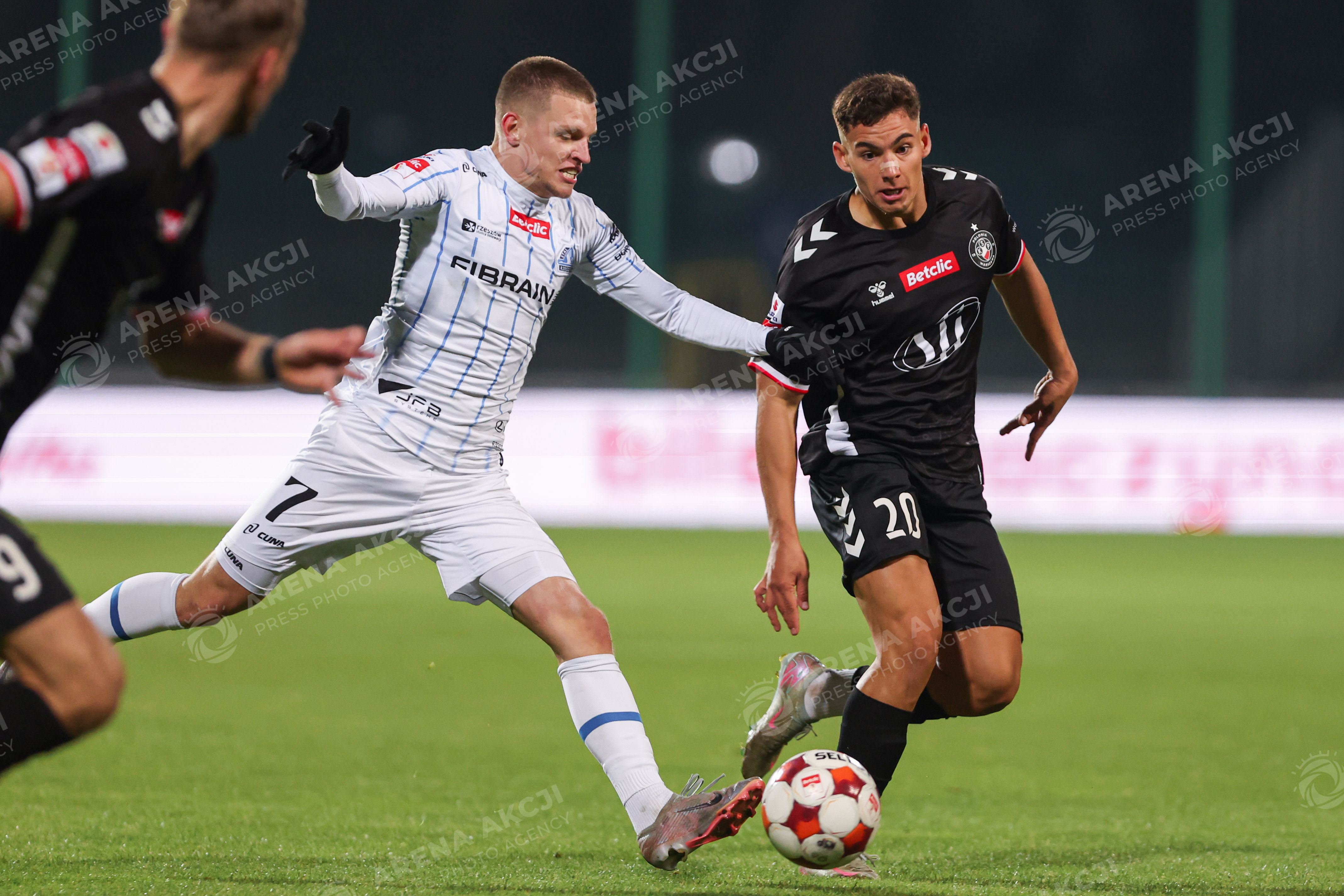 Warszawa 03.10.2025. Pilka nozna Betclic I Liga sezon 2025/2026 kolejka 12 mecz: Polonia Warszawa - Stal Rzeszow --- Football Betclic I League season 2025/2026 round 12 match: Polonia Warsaw - Stal Rzeszow nz Diogo Brasido Karol Lysiak Fot. Igor Jakubowski / Arena Akcji