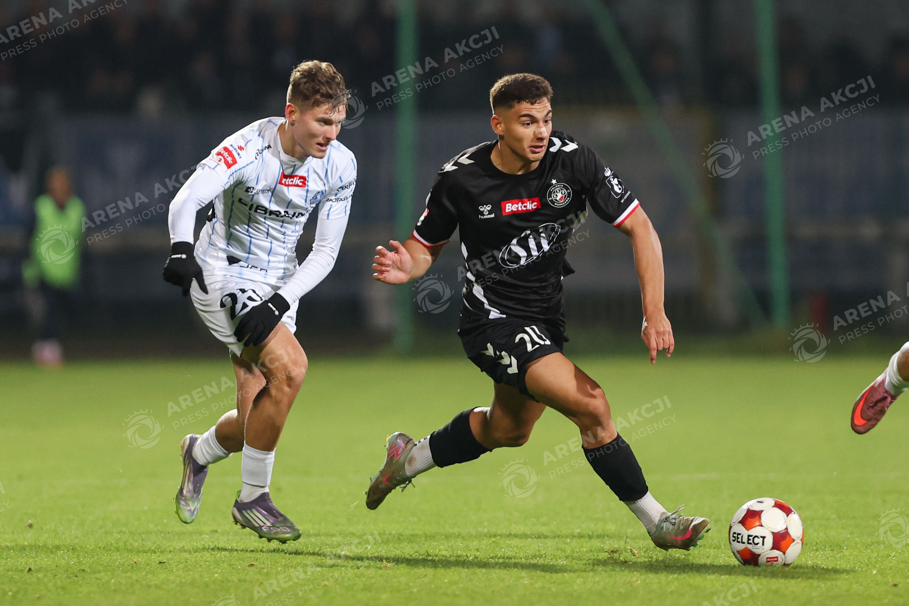 Warszawa 03.10.2025. Pilka nozna Betclic I Liga sezon 2025/2026 kolejka 12 mecz: Polonia Warszawa - Stal Rzeszow --- Football Betclic I League season 2025/2026 round 12 match: Polonia Warsaw - Stal Rzeszow nz Filip Wolski Diogo Brasido Fot. Igor Jakubowski / Arena Akcji