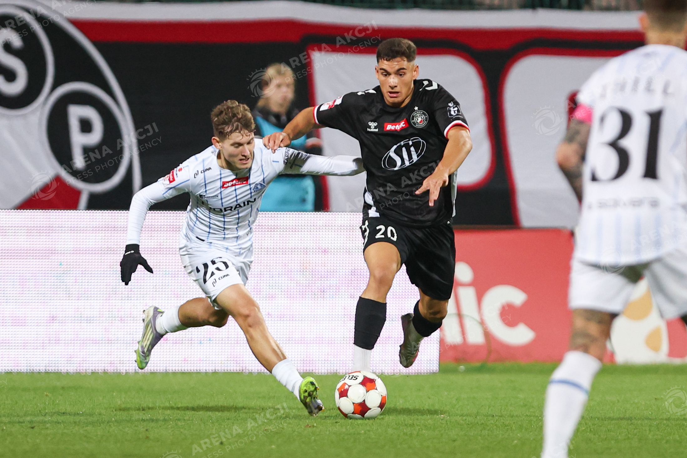 Warszawa 03.10.2025. Pilka nozna Betclic I Liga sezon 2025/2026 kolejka 12 mecz: Polonia Warszawa - Stal Rzeszow --- Football Betclic I League season 2025/2026 round 12 match: Polonia Warsaw - Stal Rzeszow nz Filip Wolski Diogo Brasido Fot. Igor Jakubowski / Arena Akcji