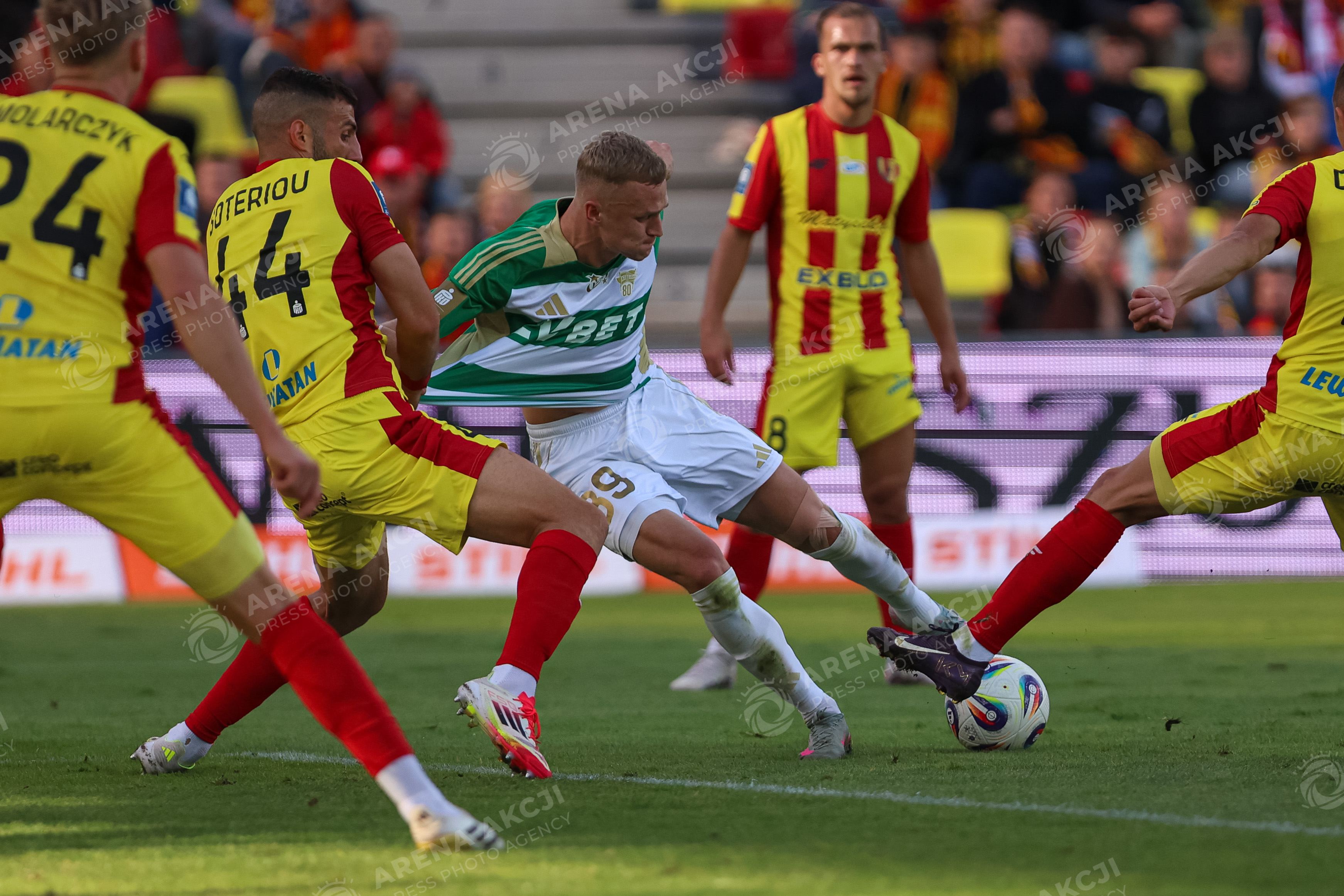 Kielce 27.09.2025. Pilka nozna PKO BP Ekstraklasa sezon 2025/2026 kolejka 10 mecz: Korona Kielce - Lechia Gdansk --- Football PKO BP Ekstraklasa season 2025/2026 round 10 match: Korona Kielce - Lechia Gdansk nz Tomas Bobcek Konstantinos Sotiriou Fot. Igor Jakubowski / Arena Akcji