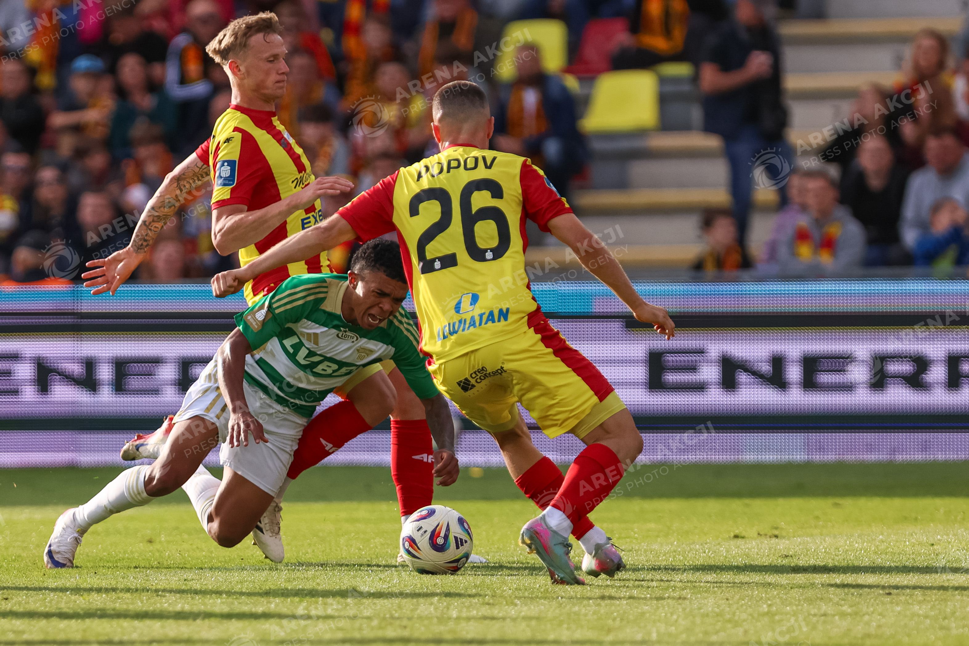 Kielce 27.09.2025. Pilka nozna PKO BP Ekstraklasa sezon 2025/2026 kolejka 10 mecz: Korona Kielce - Lechia Gdansk --- Football PKO BP Ekstraklasa season 2025/2026 round 10 match: Korona Kielce - Lechia Gdansk nz Camilo Mena Viktor Popov Fot. Igor Jakubowski / Arena Akcji