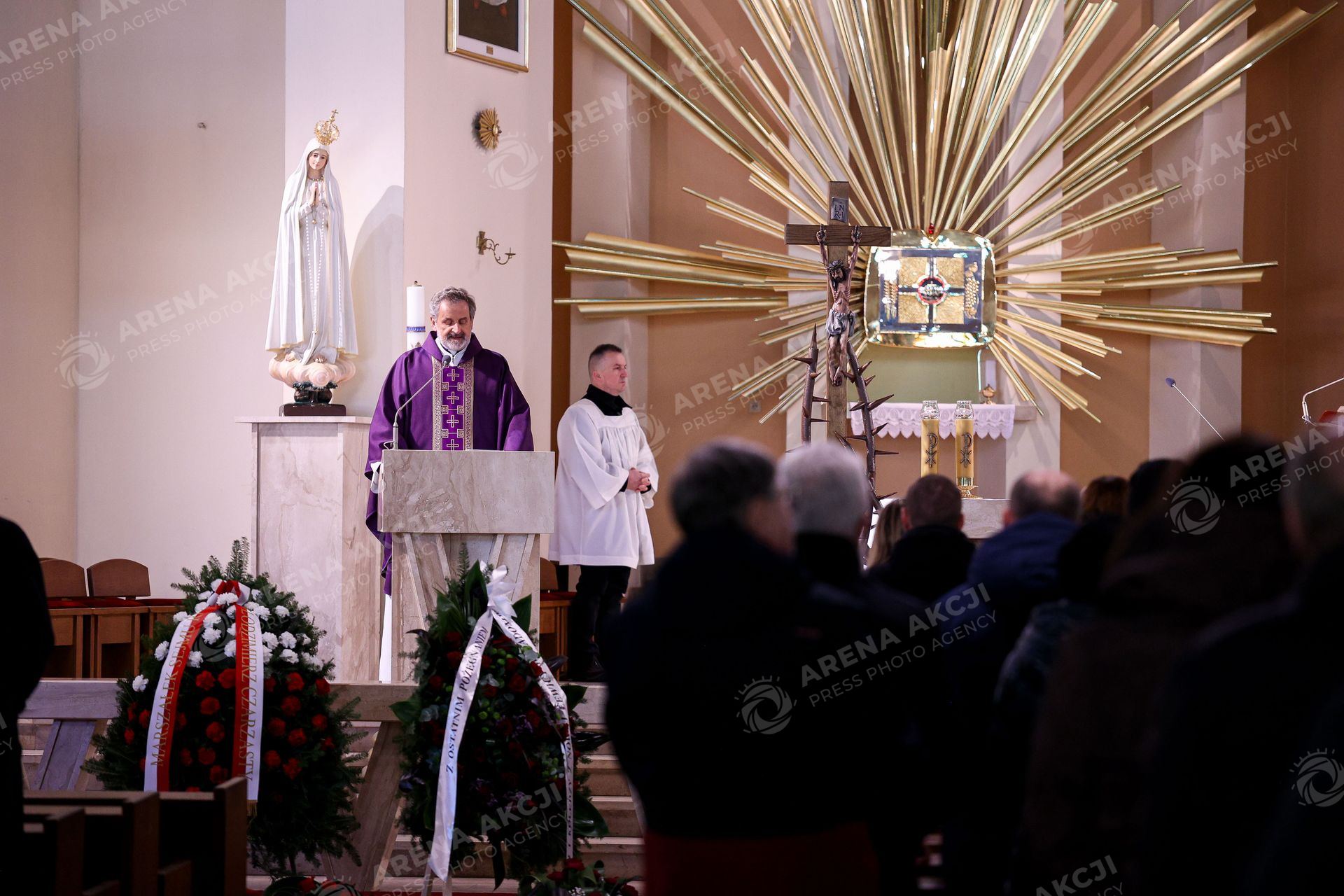 Radom 26.02.2026. Pogrzeb radomskiego radnego i spolecznika Jana Pszczoly po tym jak zmarl po kontrowersyjnej radzie miasta Radom w wieku 77 lat --- Funeral of Radom city councillor and community activist Jan Pszczola, who died at the age of 77 following a controversial Radom City Council meeting. Persons shown : ksiadz Fot. Igor Jakubowski / Arena Akcji
