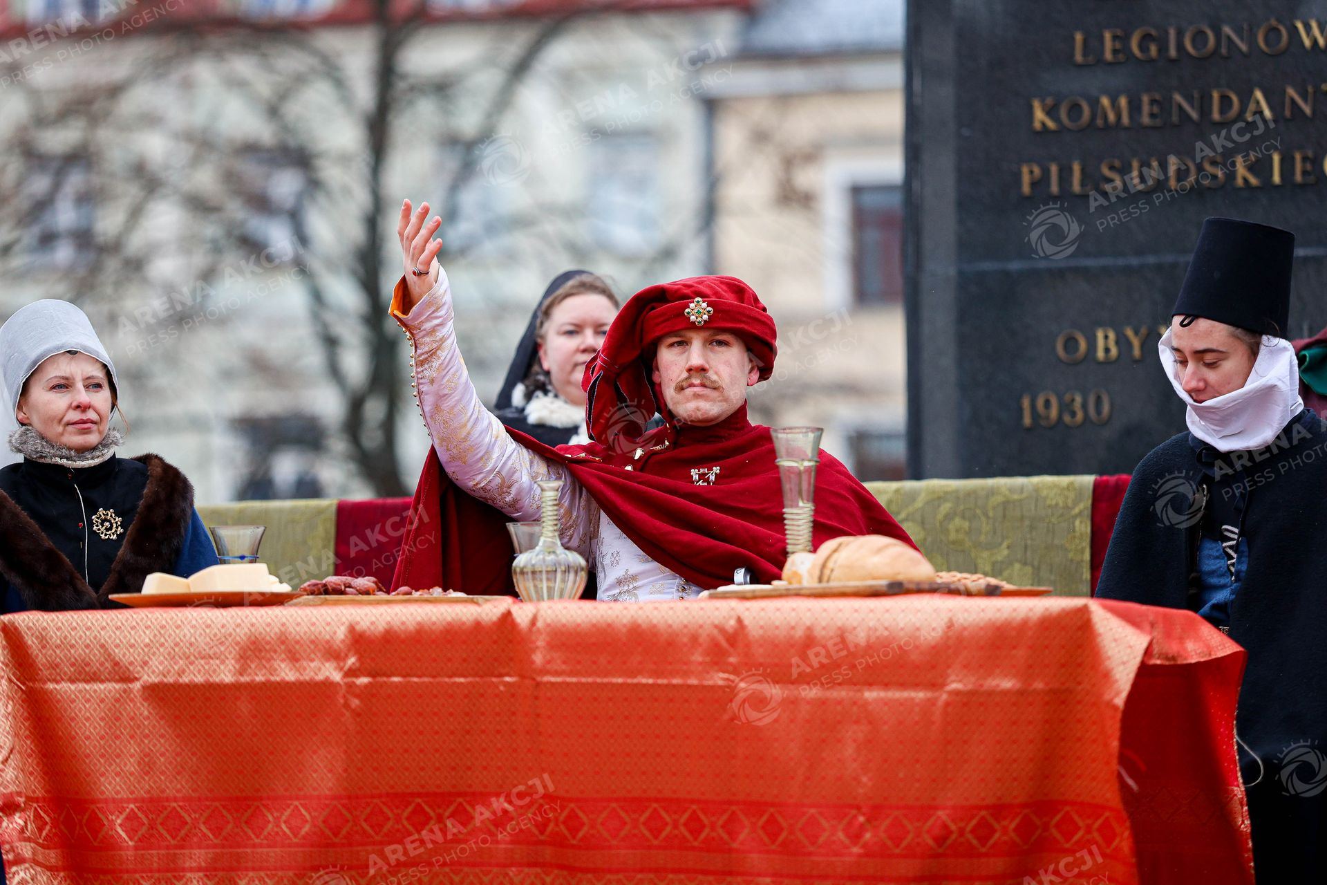Radom 28.12.2025. Z placu Corazziego wyruszy barwny orszak w sredniowiecznym stylu nawiazujacy do zareczyn Jadwiga Jagiellonka i Jerzy Bogaty w 1474 roku na radomskim zamku. Nastepnie na rynku odbyly sie pokazy rycerskie animacje dla dzieci degustacja strawy dworskiej i inne atrakcje inspirowane historia miasta --- A colorful procession in medieval style set off from Corazzi Square referring to the betrothal of Jadwiga Jagiellonka and George Bogaty in 1474 at Radom Castle Subsequently the Market Square hosted knightly displays childrens animations tastings of courtly cuisine and other attractions inspired by the city history nz Fot. Igor Jakubowski / Arena Akcji