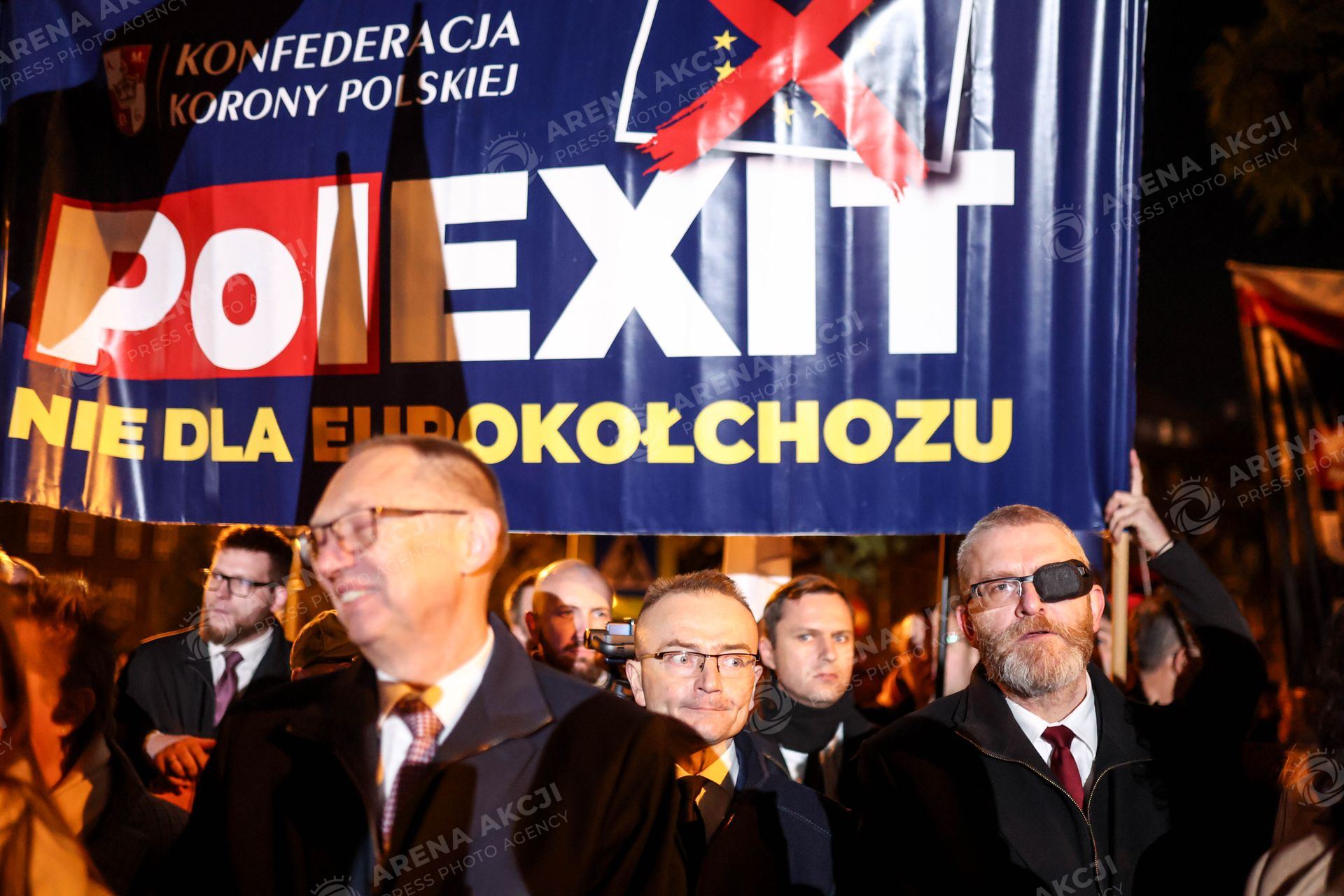 04.11.2025, Katowice Protest Zwiazkow Zawodowych przeciwko polityce rzadu wobec sektora przemyslu - Trade Unions protest against the government's policy towards the industrial sector Nz. Roman Fritz Marek Woch Grzegorz Braun Fot. Michal Chwieduk/Arena Akcji