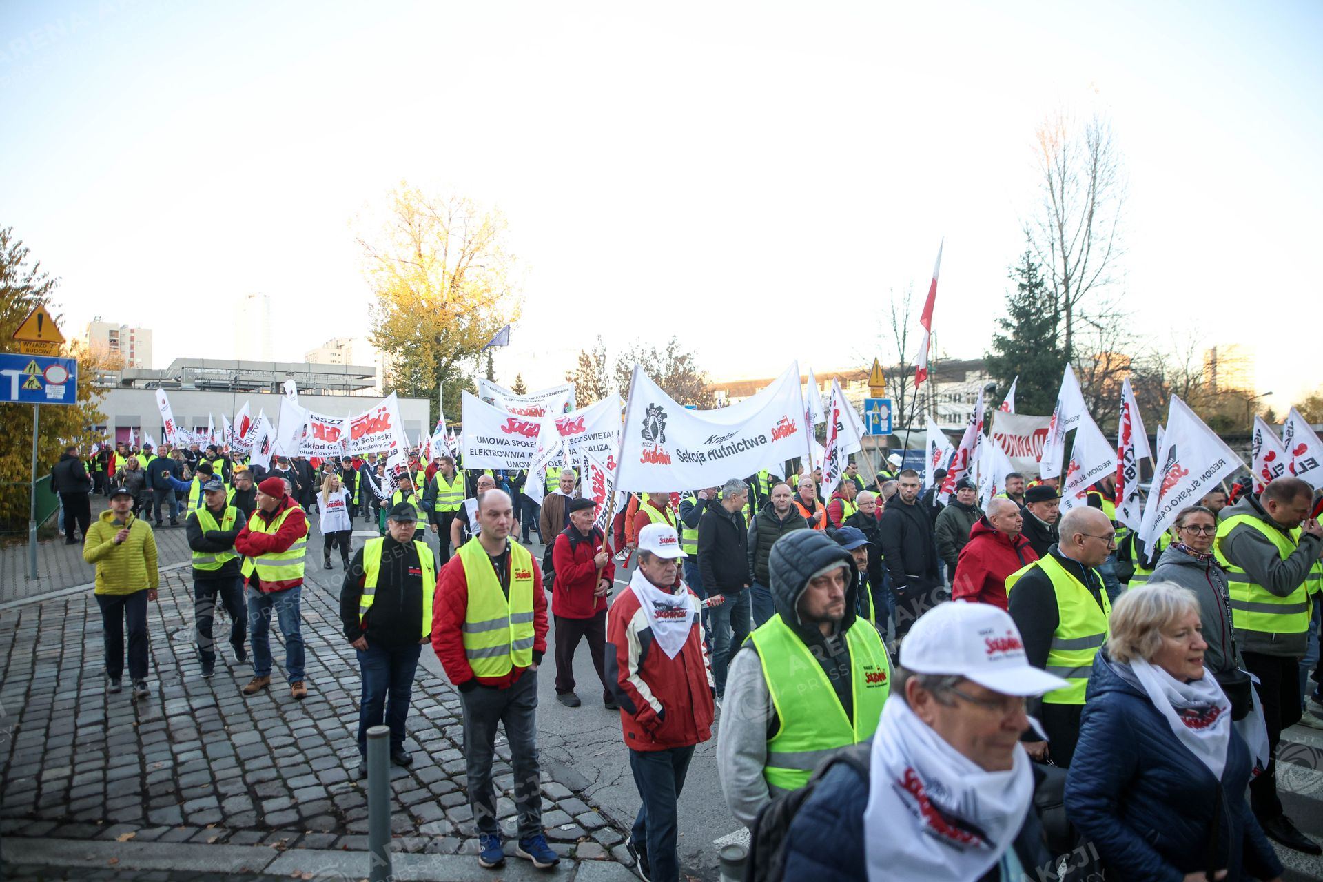 04.11.2025, Katowice Protest Zwiazkow Zawodowych przeciwko polityce rzadu wobec sektora przemyslu - Trade Unions protest against the government's policy towards the industrial sector Nz. Pikieta, protest Fot. Michal Chwieduk/Arena Akcji