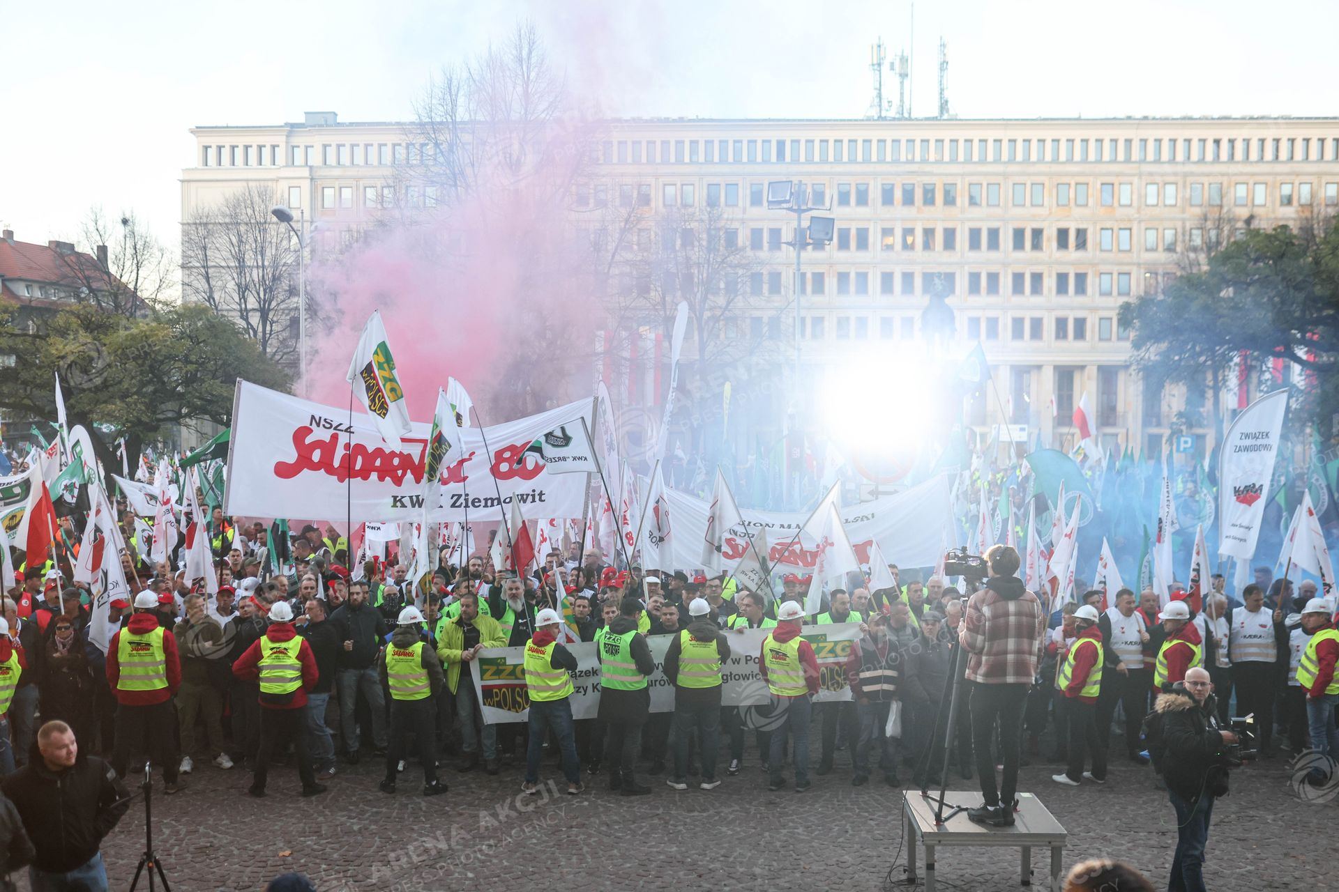 04.11.2025, Katowice Protest Zwiazkow Zawodowych przeciwko polityce rzadu wobec sektora przemyslu - Trade Unions protest against the government's policy towards the industrial sector Nz. Pikieta, protest Fot. Michal Chwieduk/Arena Akcji
