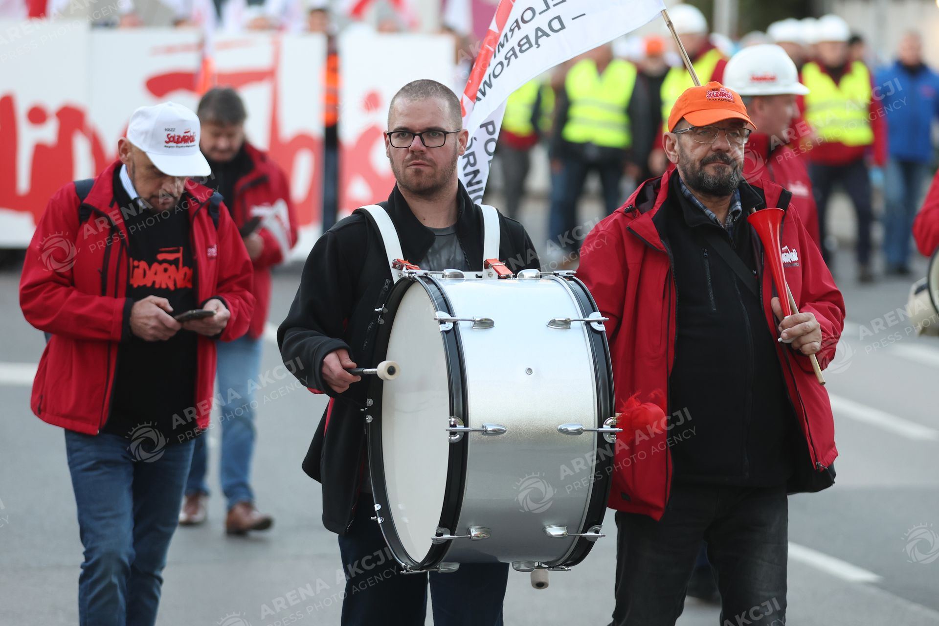 04.11.2025, Katowice Protest Zwiazkow Zawodowych przeciwko polityce rzadu wobec sektora przemyslu - Trade Unions protest against the government's policy towards the industrial sector Nz. Pikieta, protest Fot. Michal Chwieduk/Arena Akcji