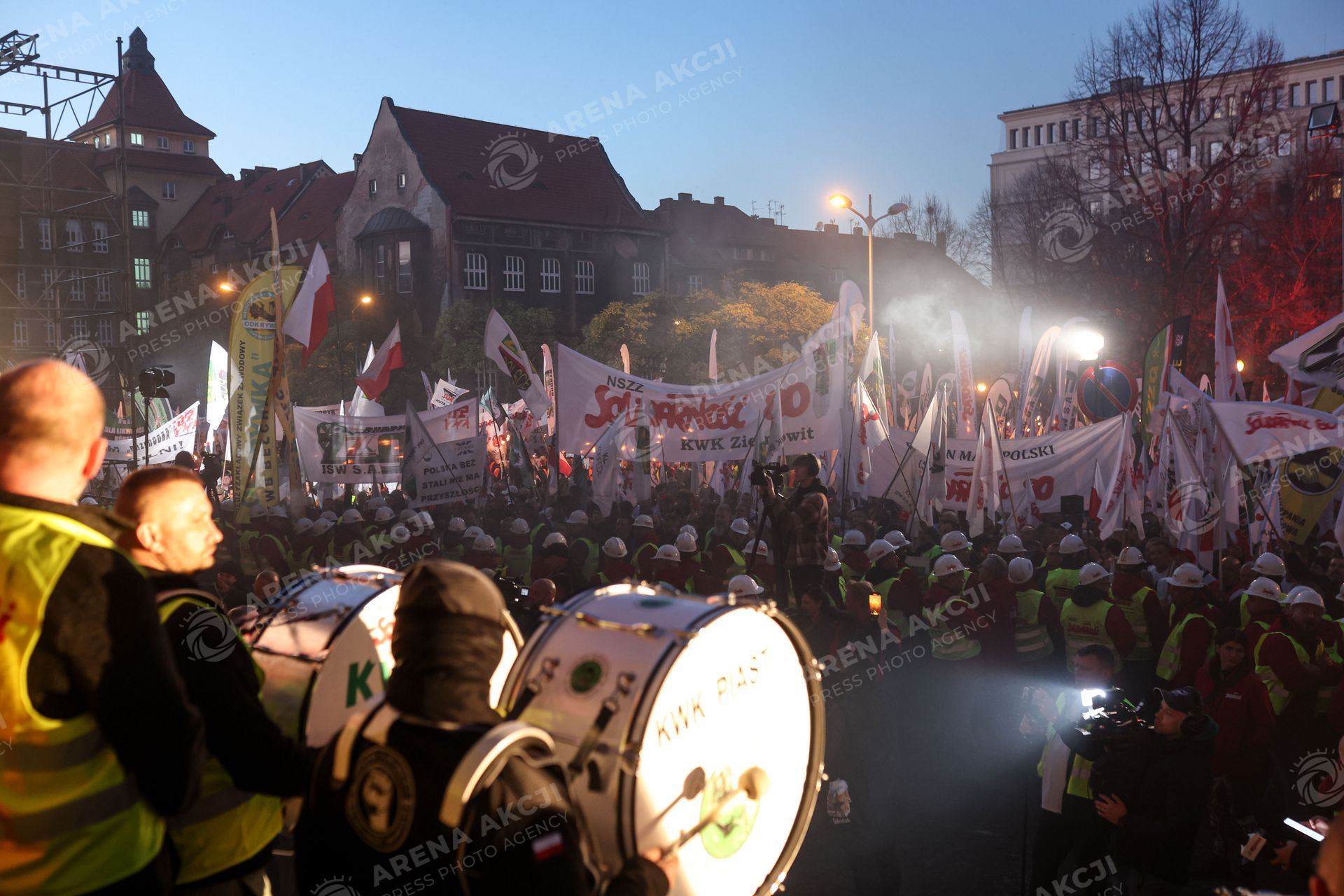 04.11.2025, Katowice Protest Zwiazkow Zawodowych przeciwko polityce rzadu wobec sektora przemyslu - Trade Unions protest against the government's policy towards the industrial sector Nz. Pikieta, protest Fot. Michal Chwieduk/Arena Akcji