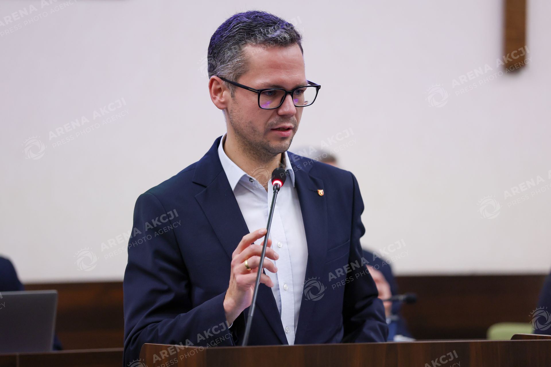 Kielce 26.11.2025. Posiedzenie rady miasta w zawiazku z nadaniem honorowego obywatelstwa miasta kielce bylemu wlascicielowi klubu Industria Kielce Bertus Servaas --- Meeting of the city council regarding the granting of honorary citizenship of the city of Kielce to the former owner of the Industria Kielce club, Bertus Servaas Fot. Igor Jakubowski
