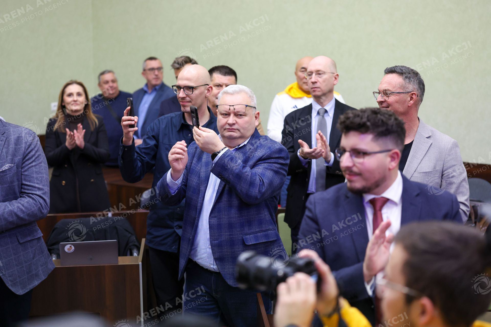 Kielce 26.11.2025. Posiedzenie rady miasta w zawiazku z nadaniem honorowego obywatelstwa miasta kielce bylemu wlascicielowi klubu Industria Kielce Bertus Servaas --- Meeting of the city council regarding the granting of honorary citizenship of the city of Kielce to the former owner of the Industria Kielce club, Bertus Servaas Fot. Igor Jakubowski